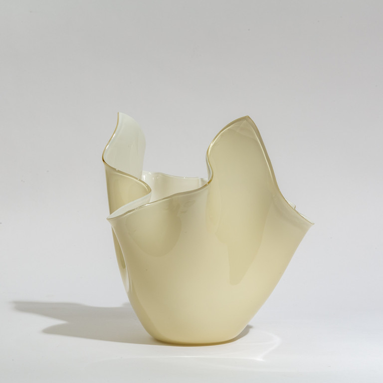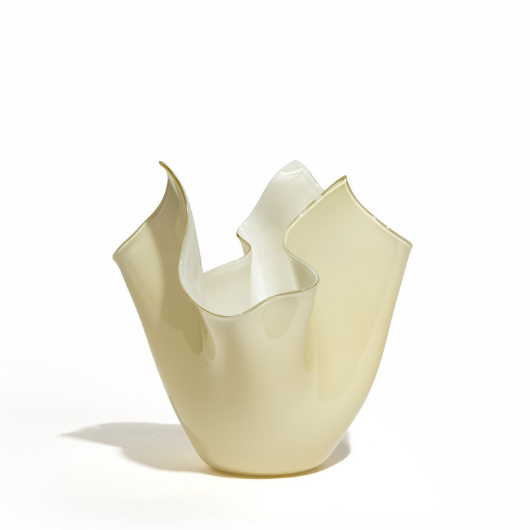 Un vaso 'fazzoletto' in vetro incamiciato lattimo e avorio.