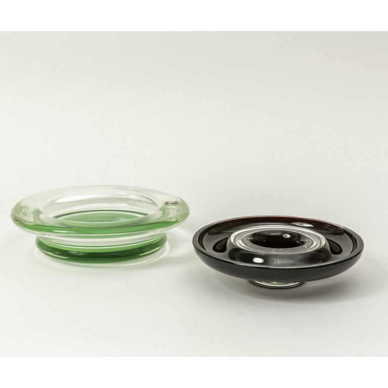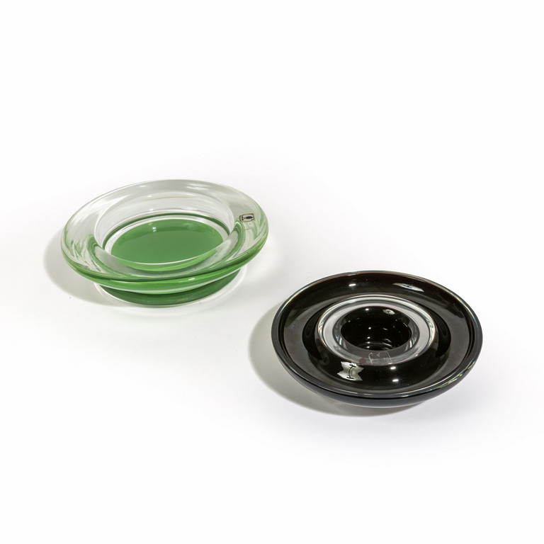 Una coppa in cristallo con macchia verde sul fondo e una coppa in cristallo con