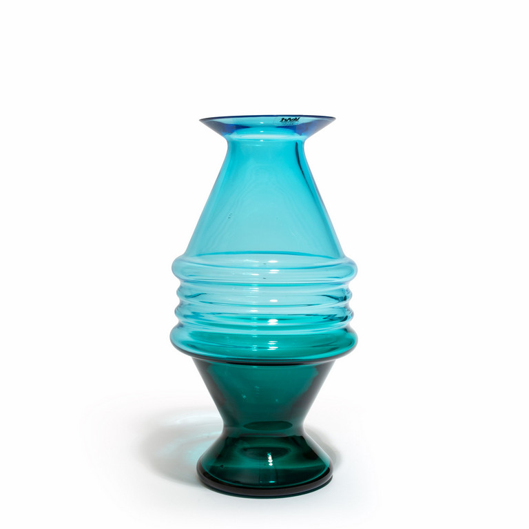 Un vaso 'Saturno' in vetro trasparente acquamare sfumato verde.