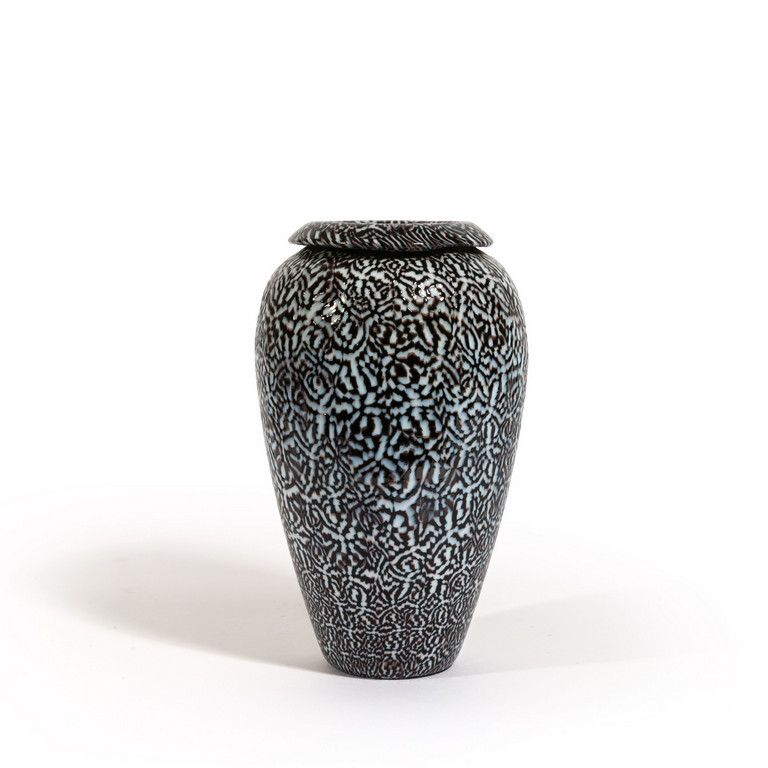 Un vaso 'dama' a scacchiera di murrine lattimo e nero mod.