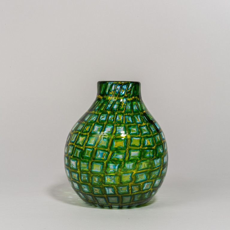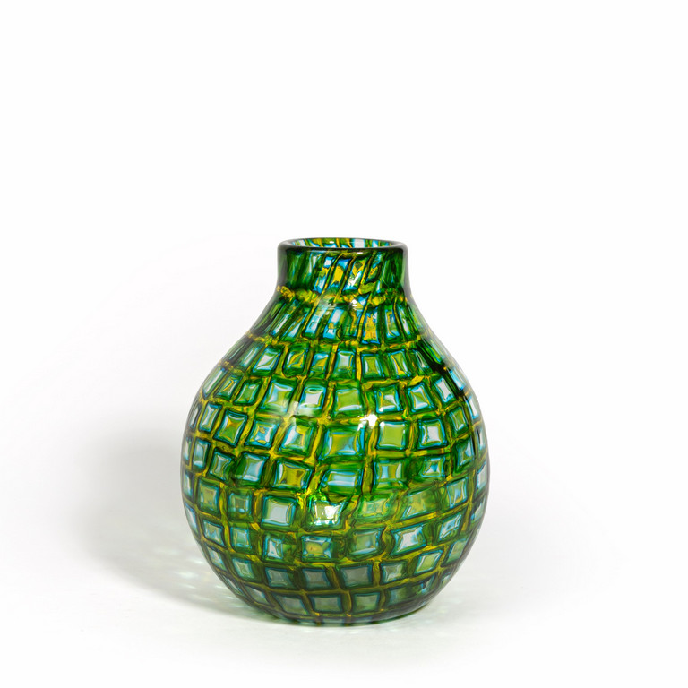 Un vaso 'murrine romane' a murrine quadre giallo-verdi mod. 520.20 del catalogo venini