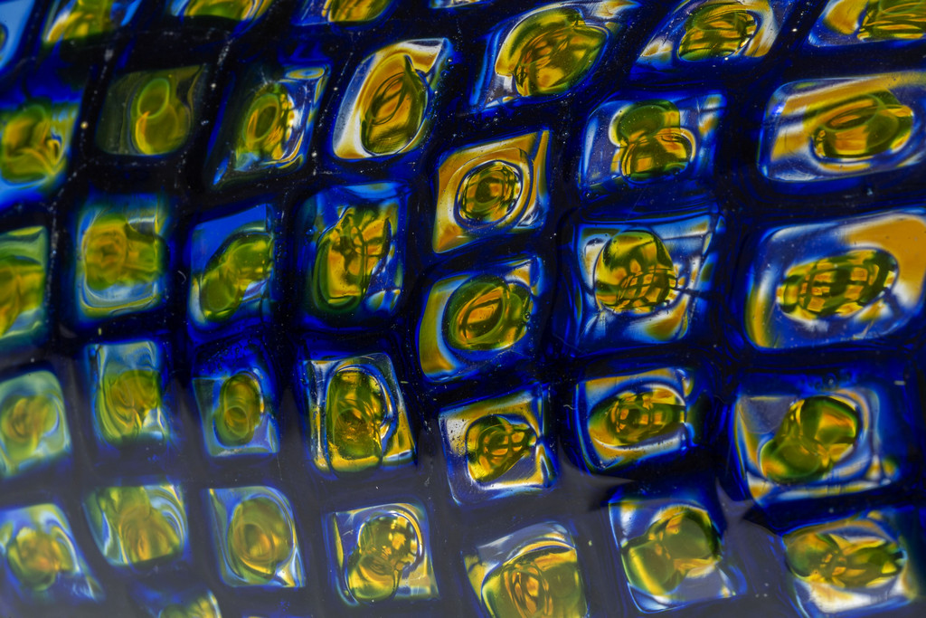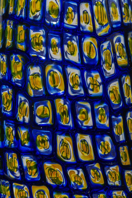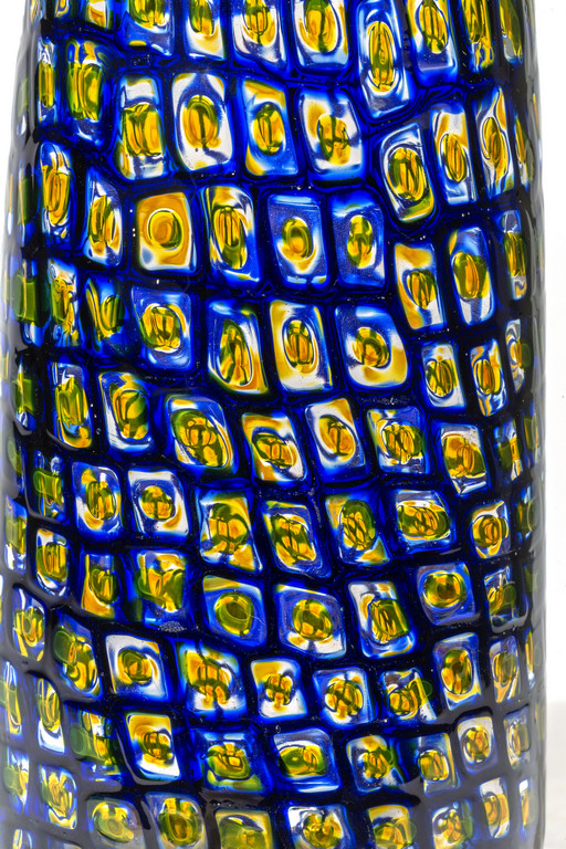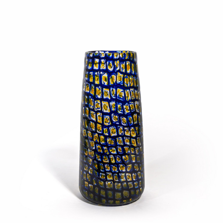 Un vaso 'murrine romane' a murrine quadre giallo blu mod. 52021 del catalogo venini