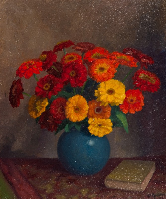 Charles Husslein ( 1894 - 1971) VASO DI FIORI Olio su faesite, cm. 65x54 Firmato in basso a destra.
