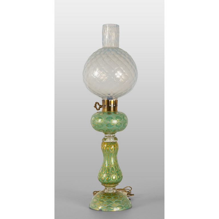 Cristallo a bolle regolari e foglia oro paralume in vetro opalino a baloton.