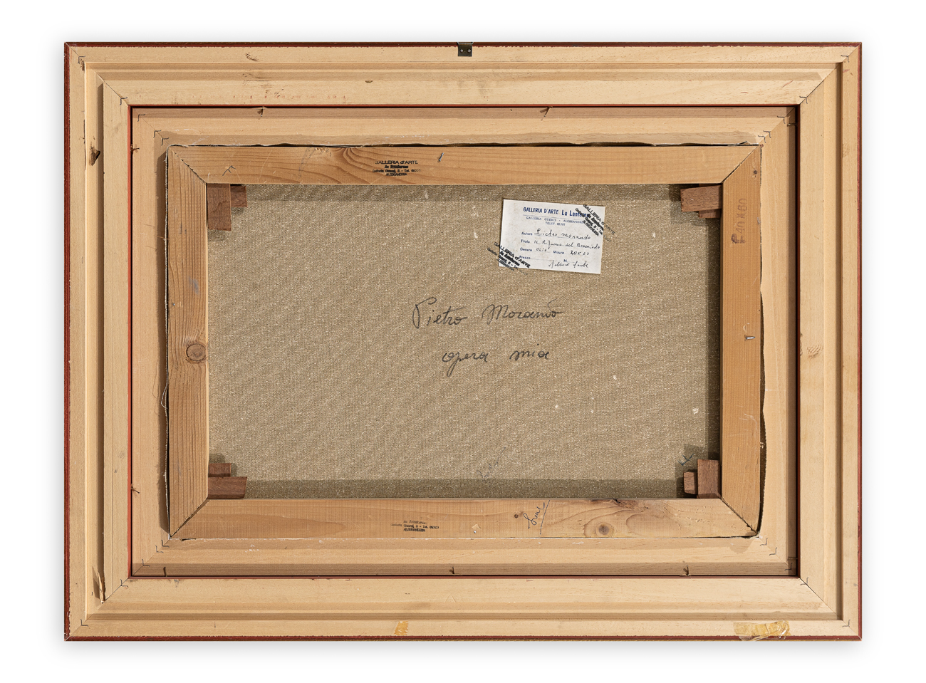 Etichetta e timbri della Galleria La Lanterna (AL) al retro