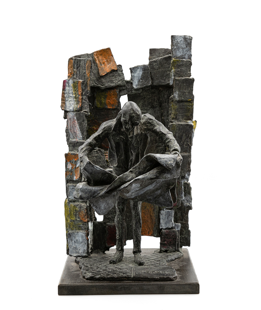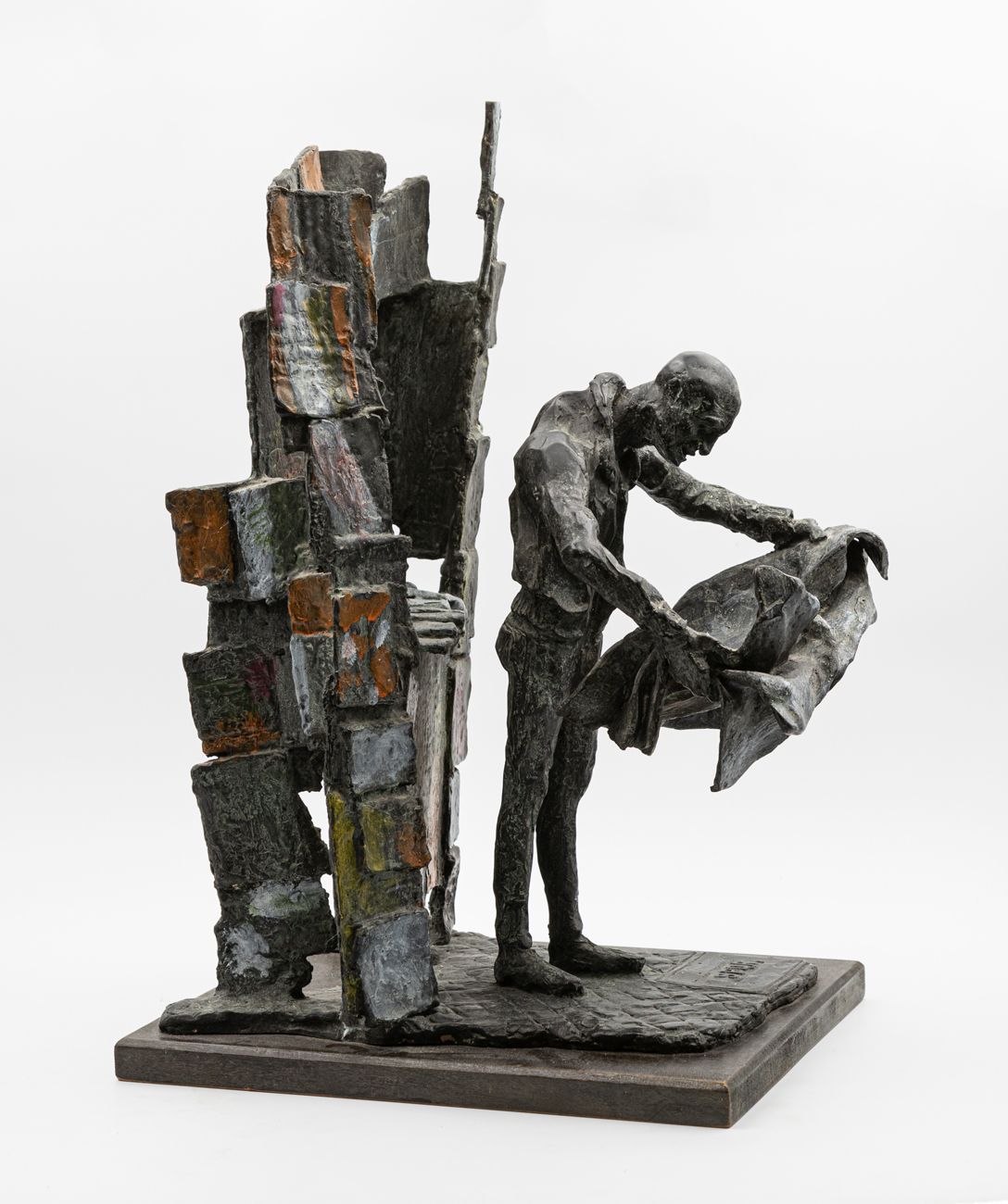 Scultura in bronzo dipinto su base in legno