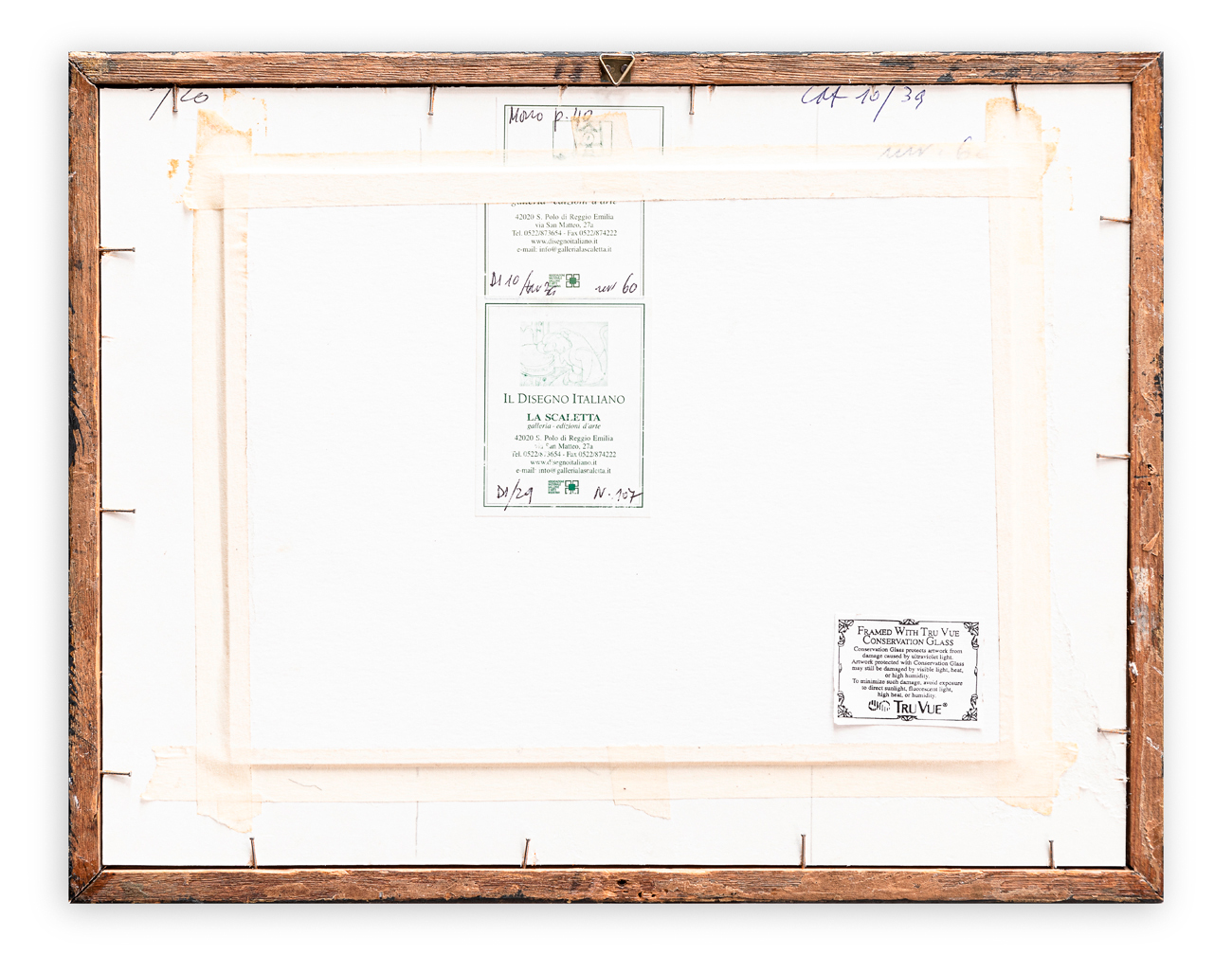 Etichetta della Galleria La Scaletta (RE) al retro della tavola protettiva