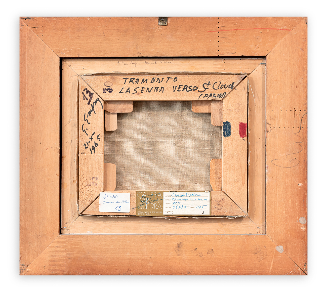 Etichetta e timbri della Galleria d'Arte Pirra (TO) al retro