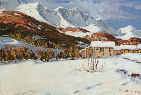 ALMONDO GIUSEPPE Paesaggio innevato, 1986olio su tavola cm. 35x50, firma e...