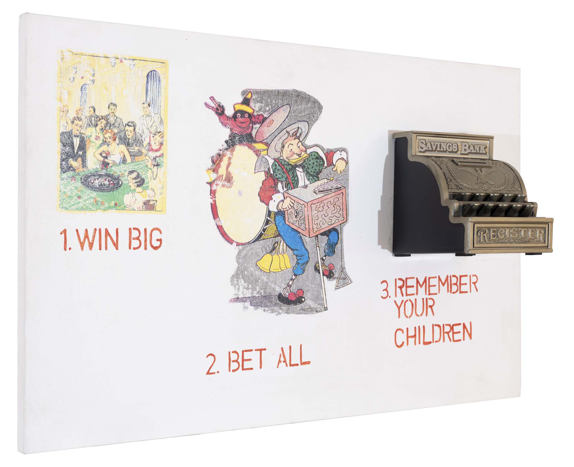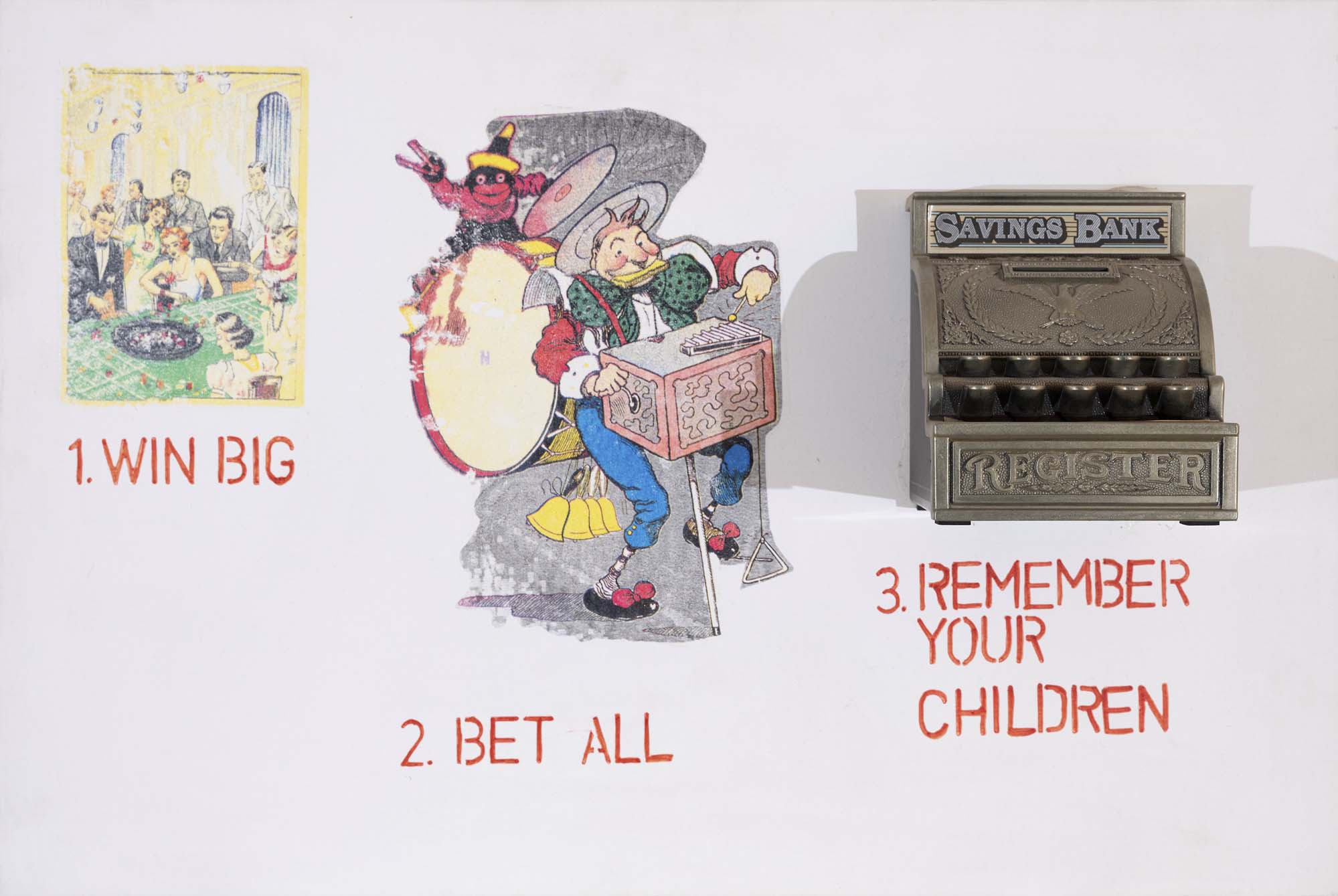 tecnica mista con assemblaggio di oggetti su tela riportata su tavola cm. 40x60