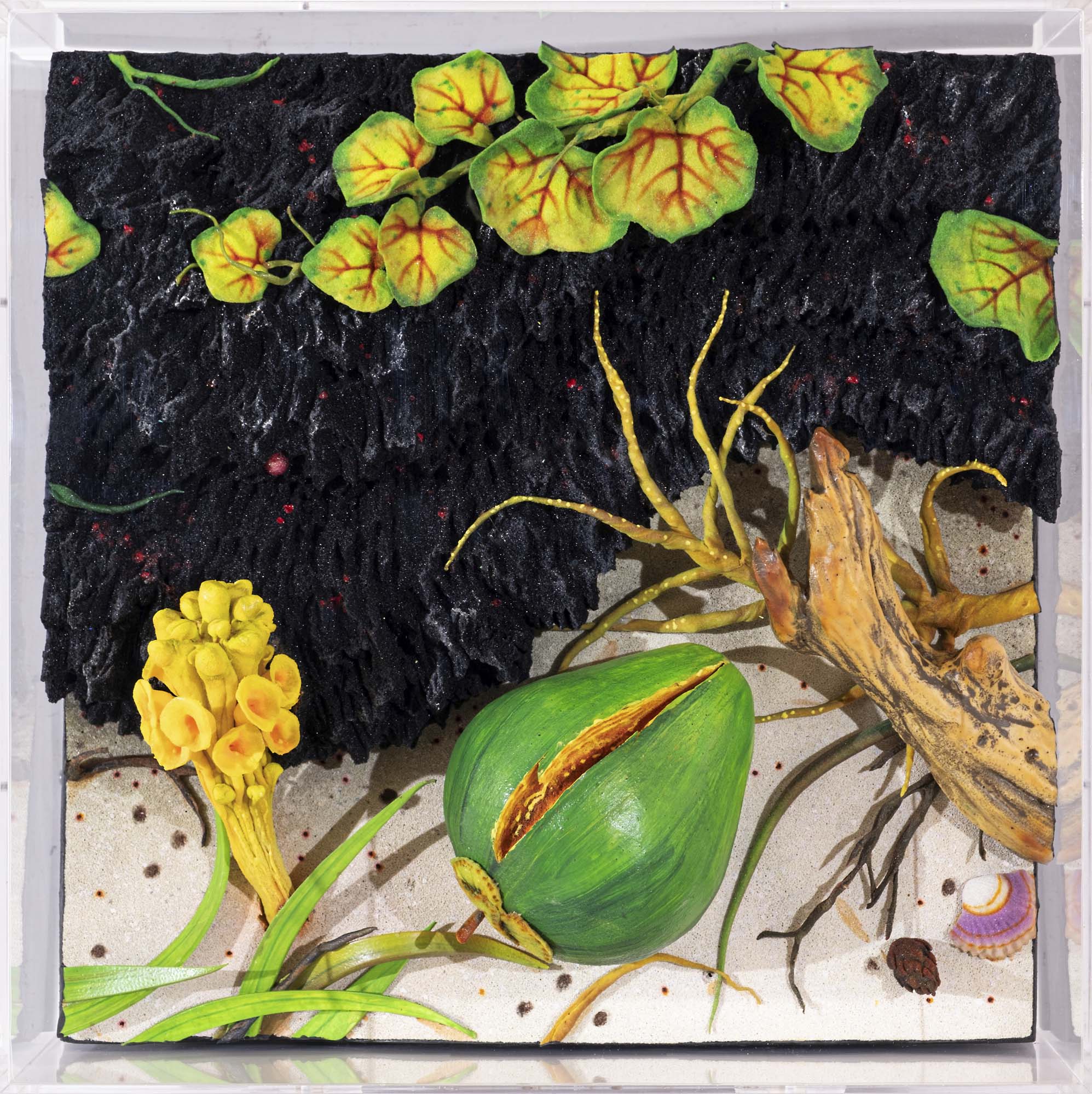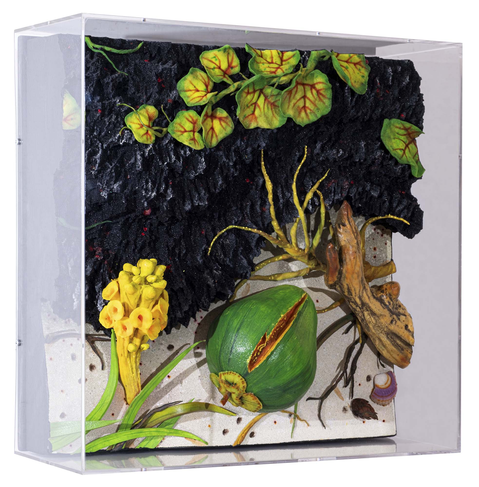 poliuretano espanso entro teca in plexiglass cm. 50x50x20