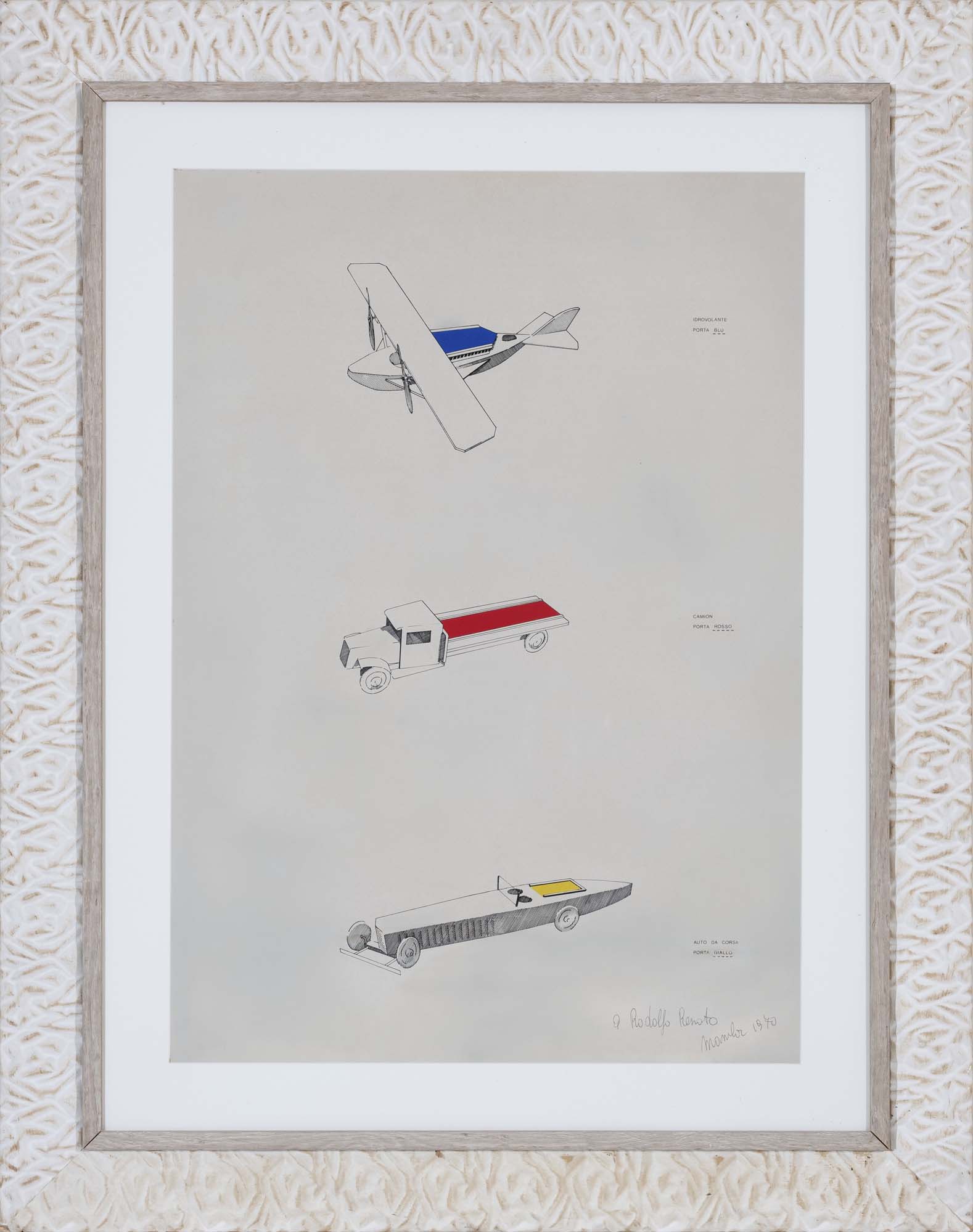 Idrovolante porta blu, camion porta rosso, auto da corsa porta giallo 1970
