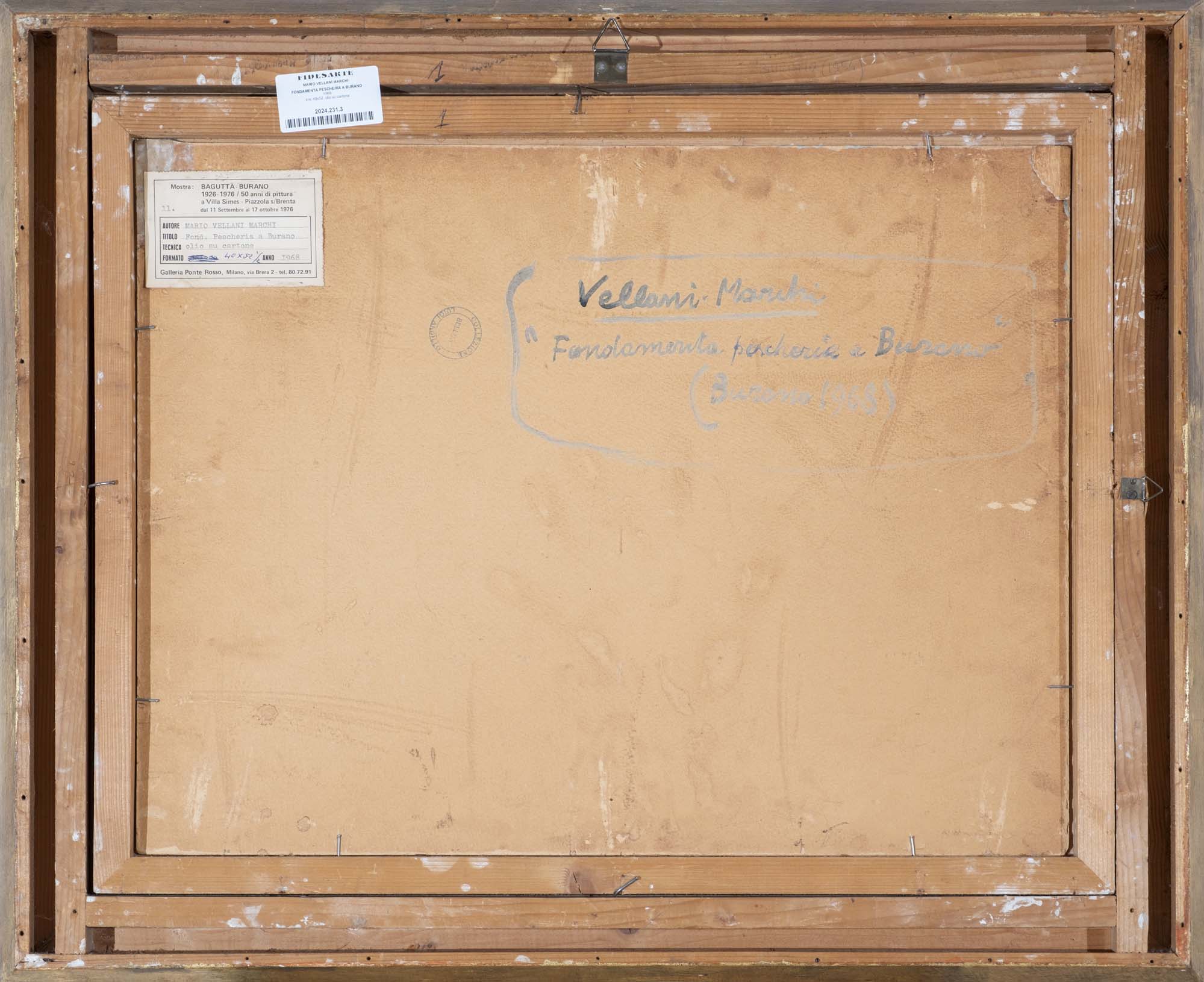 Piazzola sul Brenta, Villa Simes; Galleria Ponte Rosso Milano; "Bagutta - Burano 1926 1976. 50 anni di pittura" settembre/ottobre 1976 - etichetta al retro
