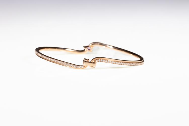 Braccialetto rigido in oro rosa Gismondi con brillanti e zaffiro rosa