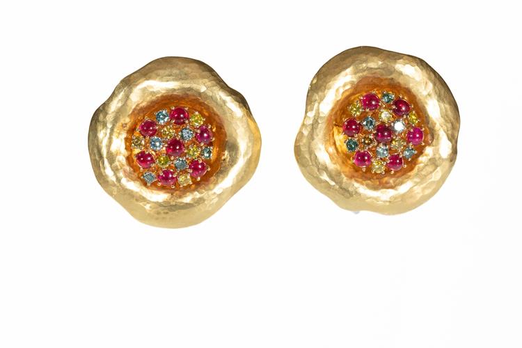 Orecchiini Vendorafa in oro giallo con diamanti e rubini