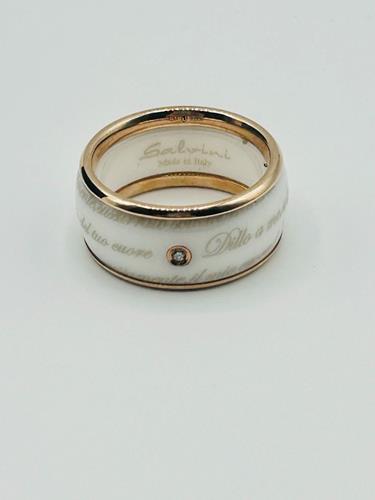 Anello a fascia Salvini in oro rosa e smalto con promessa d'amore