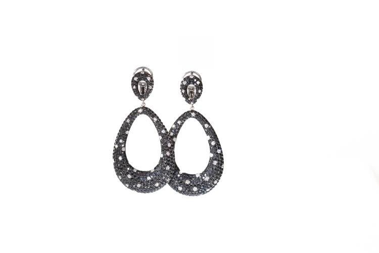 Orecchini Gismondi pendenti con pavé di diamanti bianchi e neri