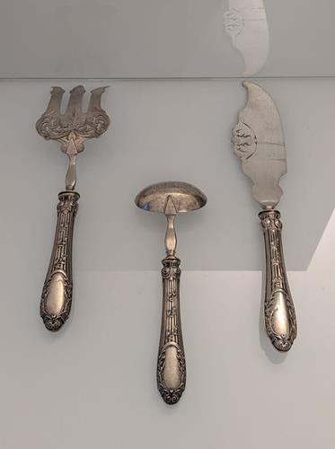 Servizio da dolce in argento Liberty composto da forchettone, coltello e mestolo