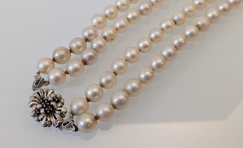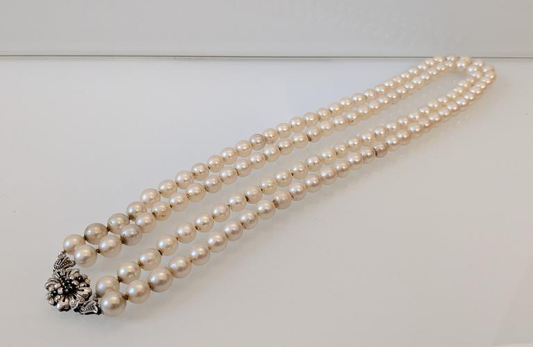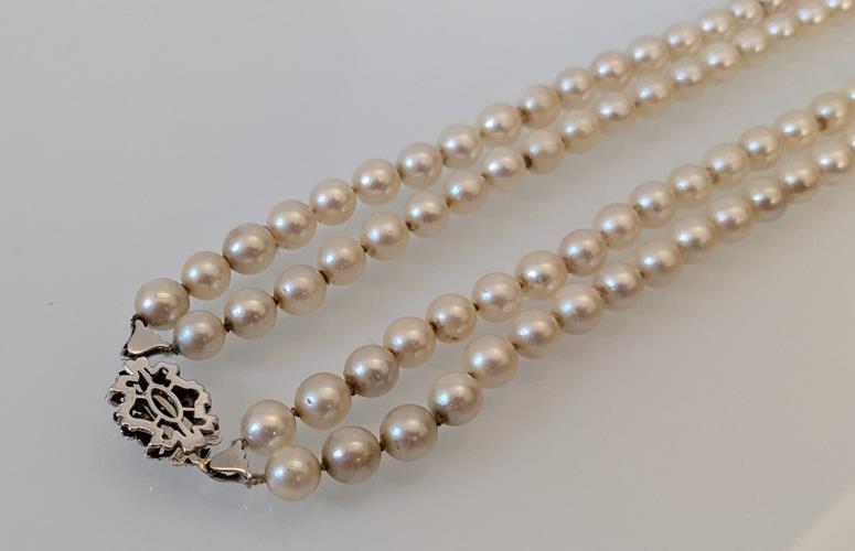 Lot 259 | Collana di perle 2 fili chiusura in oro e zaffiri