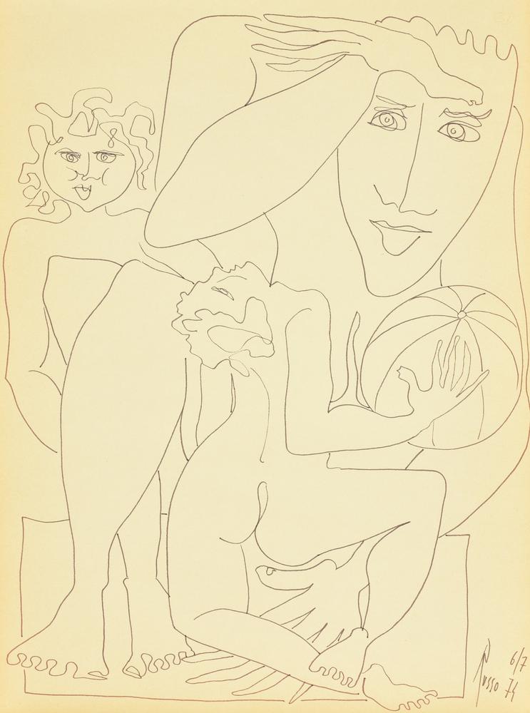 Russo GIOCHI CON PALLA pennarello su carta, cm 40x30 firma e data eseguito...
