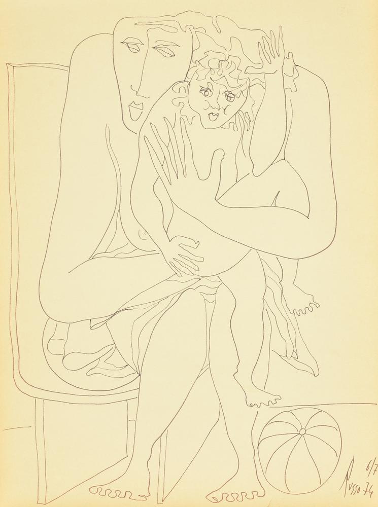 Russo ABBRACCIO pennarello su carta, cm 40x30 firma e data eseguito nel 1974
