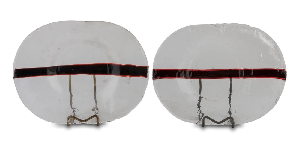 Diametro 23 cm Piatti in vetro di Murano di Aureliano Toso Vetro, fondo trasparente bicolore e nero cangiante Ottime condizioni