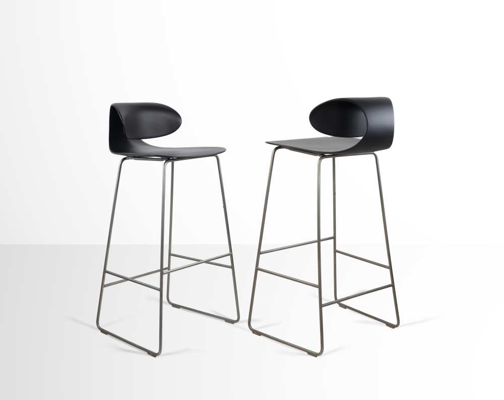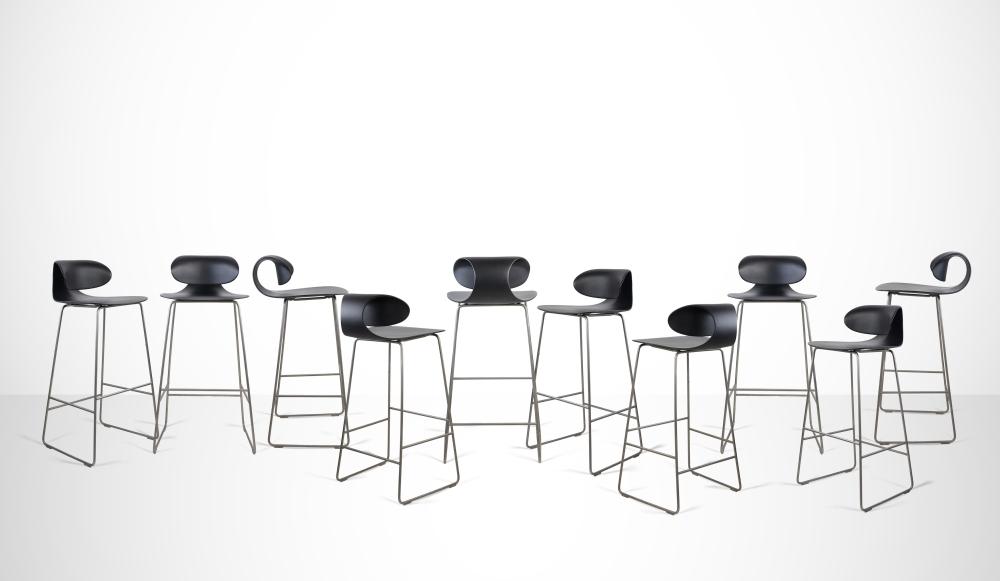 Set di 10 panche Maxima 1990s Policarbonato stampato con struttura e poggiapiedi in acciaio 99 x 50,8 x 53,5 cm