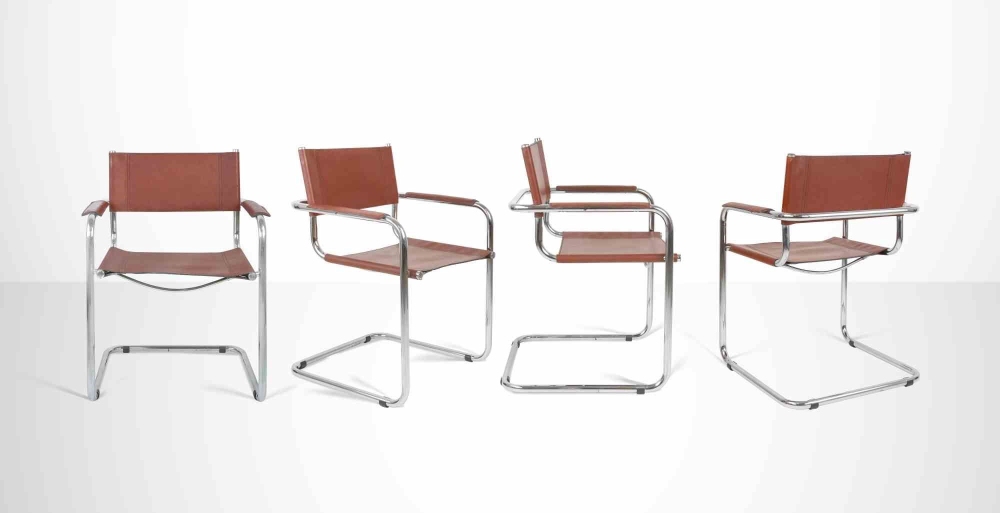 Acciaio e pelle 83 x 55 x 55 cm Set di 4 sedie vintage S34 Cognac Italia Buone condizioni, usura coerente con l'età e l'uso