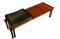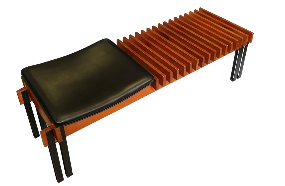 Inge & Luciano Rubino Panchina vintage 1960s Legno di teak, metallo verniciato, cuscino rivestito in vinilpelle 33 (h) x 113 x 38 cm