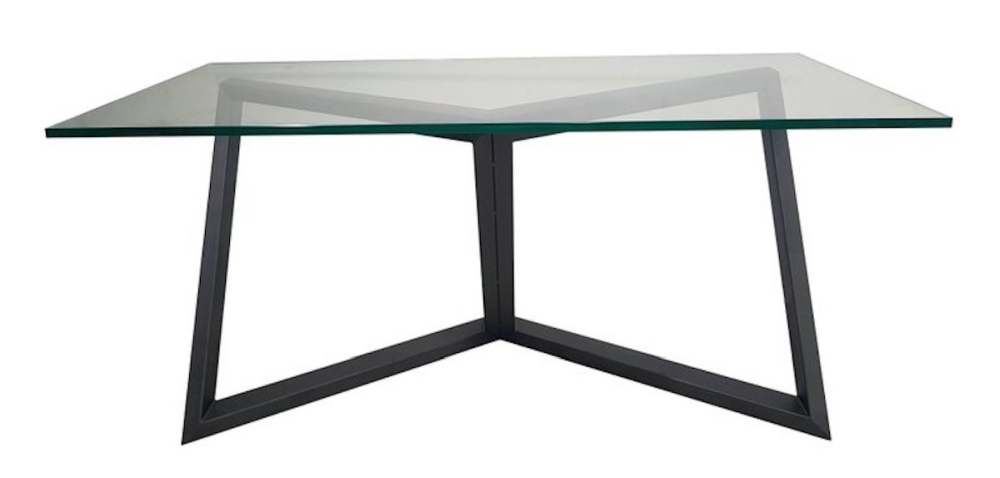 Ferro, cristallo 79,50 x 72,50 x 170,00 cm Nato Frascà Tavola Ferro di forma derivato dall'unione di quattro delle sei diagonali interne al cubo. Piano in cristallo. Archiviato presso l'Archivio Nato Frascà