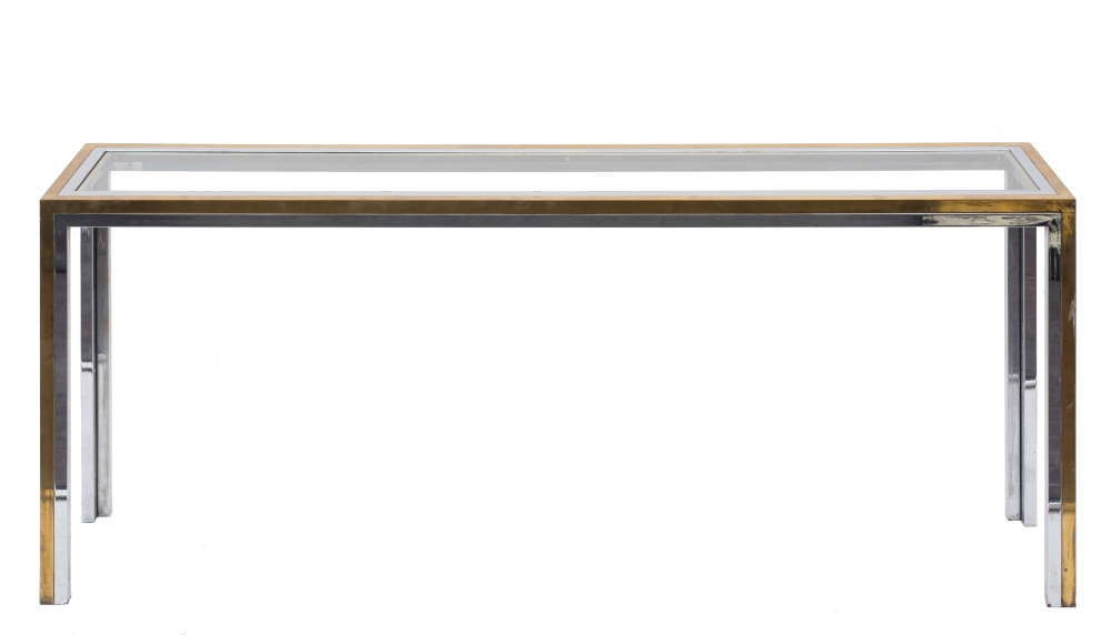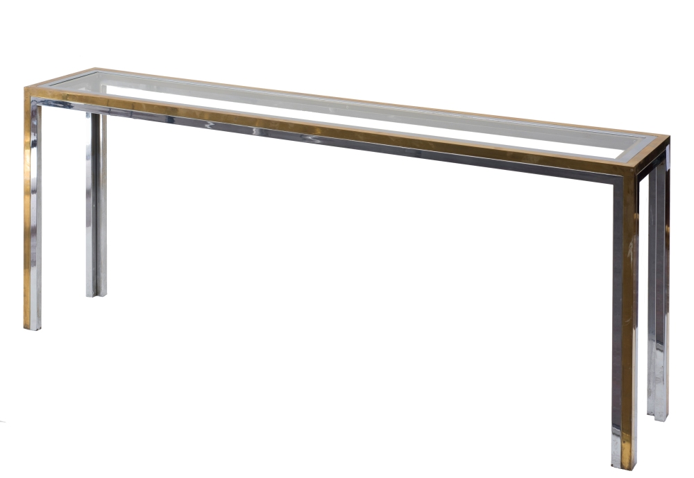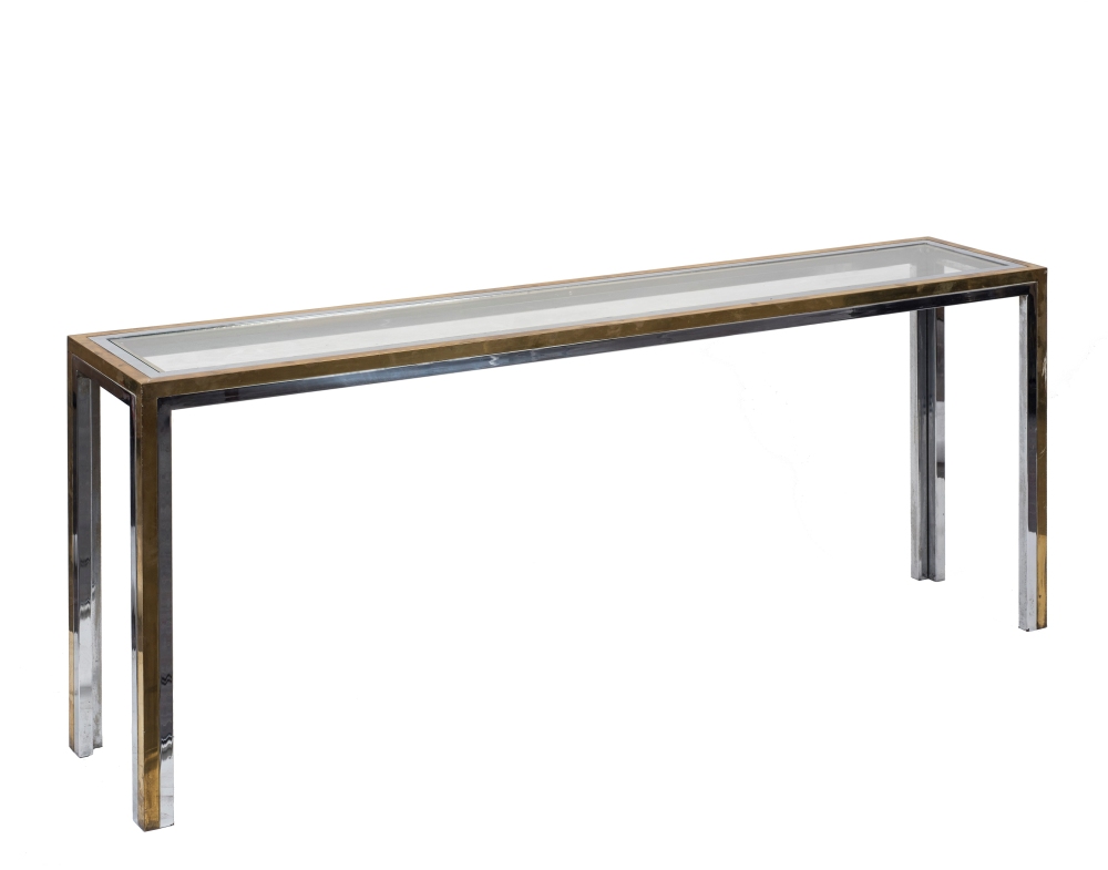 Console 1970 - 74 Ottone, acciaio cromato, vetro Cm 73 (h) x 185 x 35