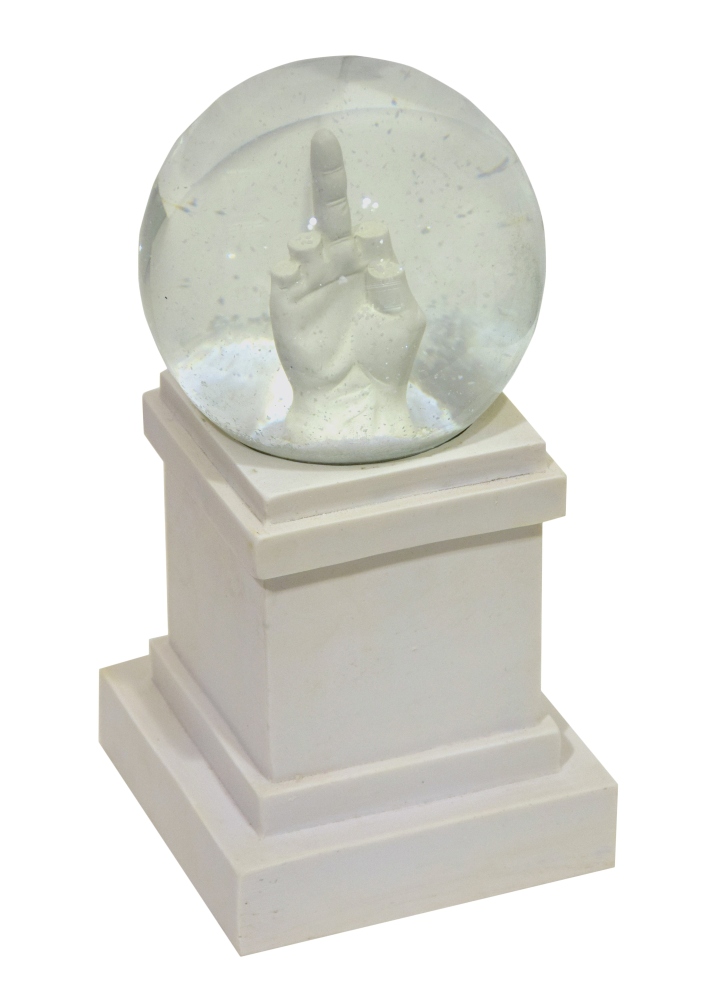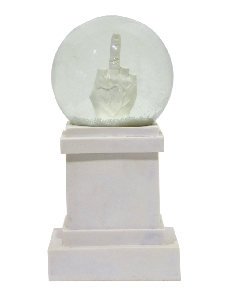 Vetro e resina 25 x 12,3 x 12,3 cm Palla di neve L.O.V.E. Riproduzione dell'opera monumetale di Maurizio Cattelan in Piazza Affari a Milano. Prodotta da Seletti in 2000 pezzi in occasione della settimana della moda di Milano 2014. Edizione esaurita. L'opera è accompagnata dalla confezione originale.