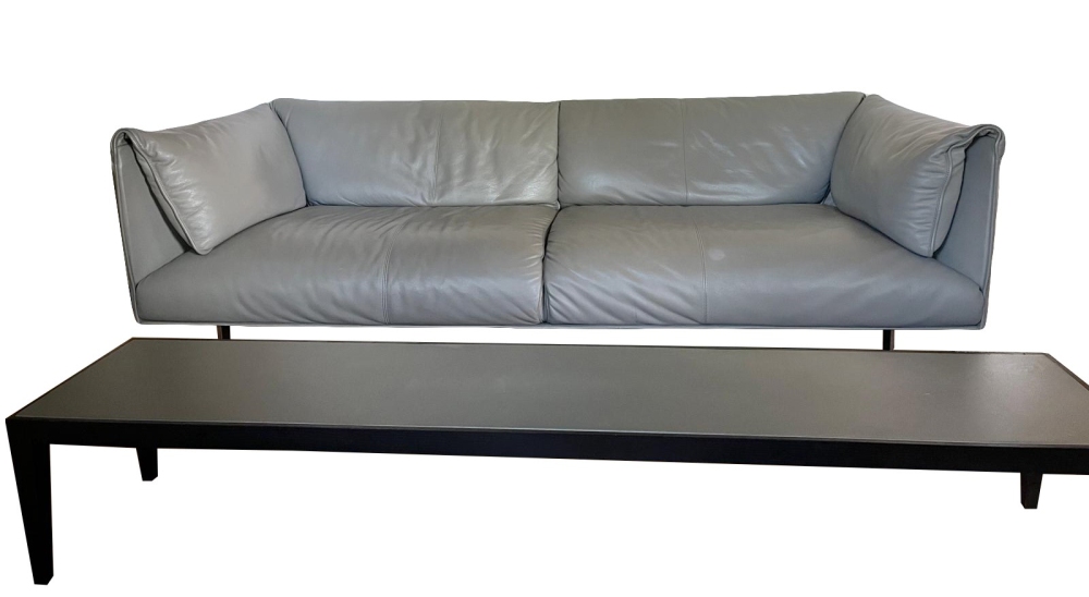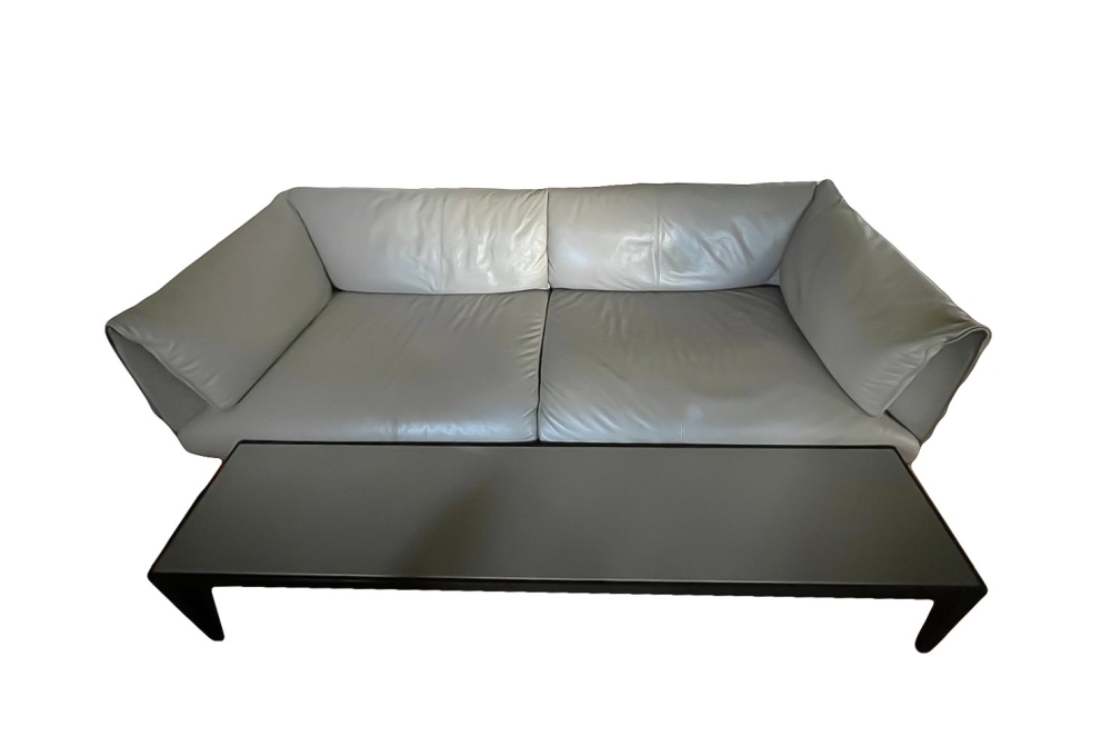 Divano a tre posti in pelle e tavolino vintage John John 1980s Divano: 200x90x H 68 cm Tavolino: 185 x 35 cm
