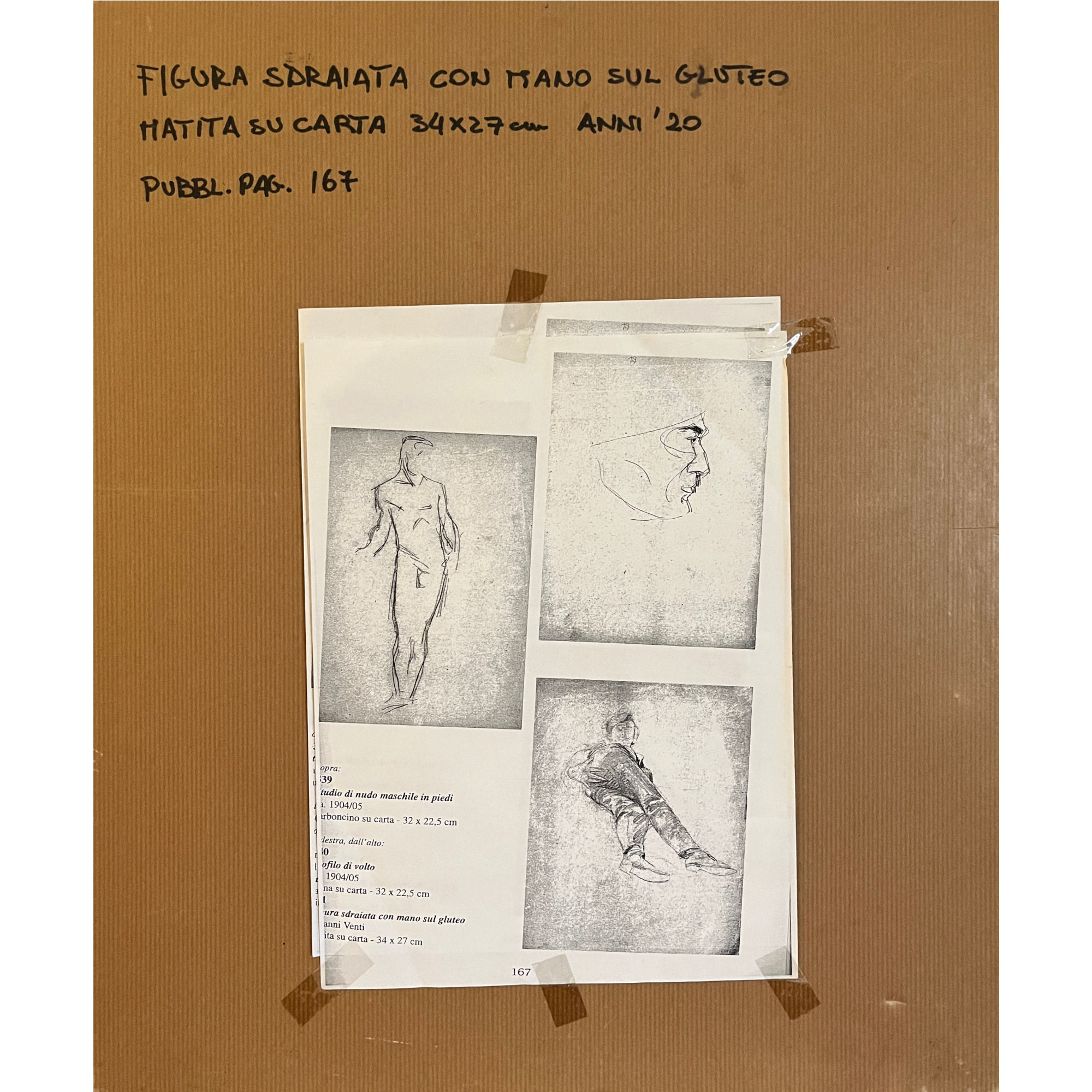 Luigi Bonazza, Figura sdraiata, anni ’20, matita su carta, cm 34x27. In cornice cm 52x42