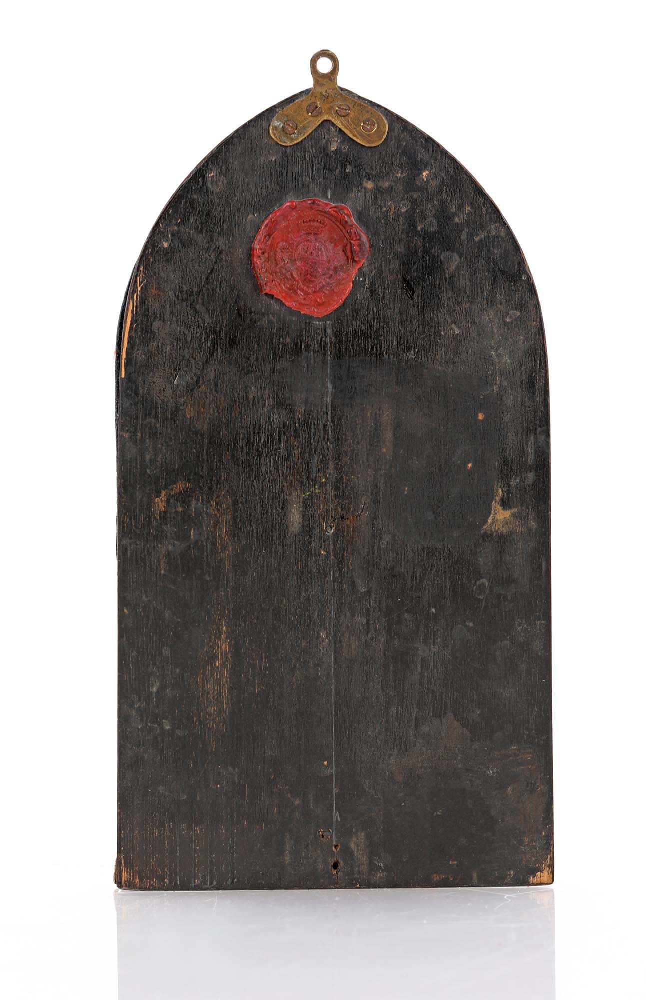 Artista limosino del XVIII secolo Placchetta devozionale di forma ogivale...