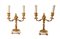 Coppia di lampade in bronzo dorato a due luci, XIX secolo stelo rastremato...
