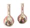 Coppia di vasi in porcellana rosa, Dresda, fine XIX/inizi XX secolo corpo a sfera e lungo collo cilindrico, decorati da scene galanti alternate a grandi composizioni di fiori su fondo rosa altezza cm 32