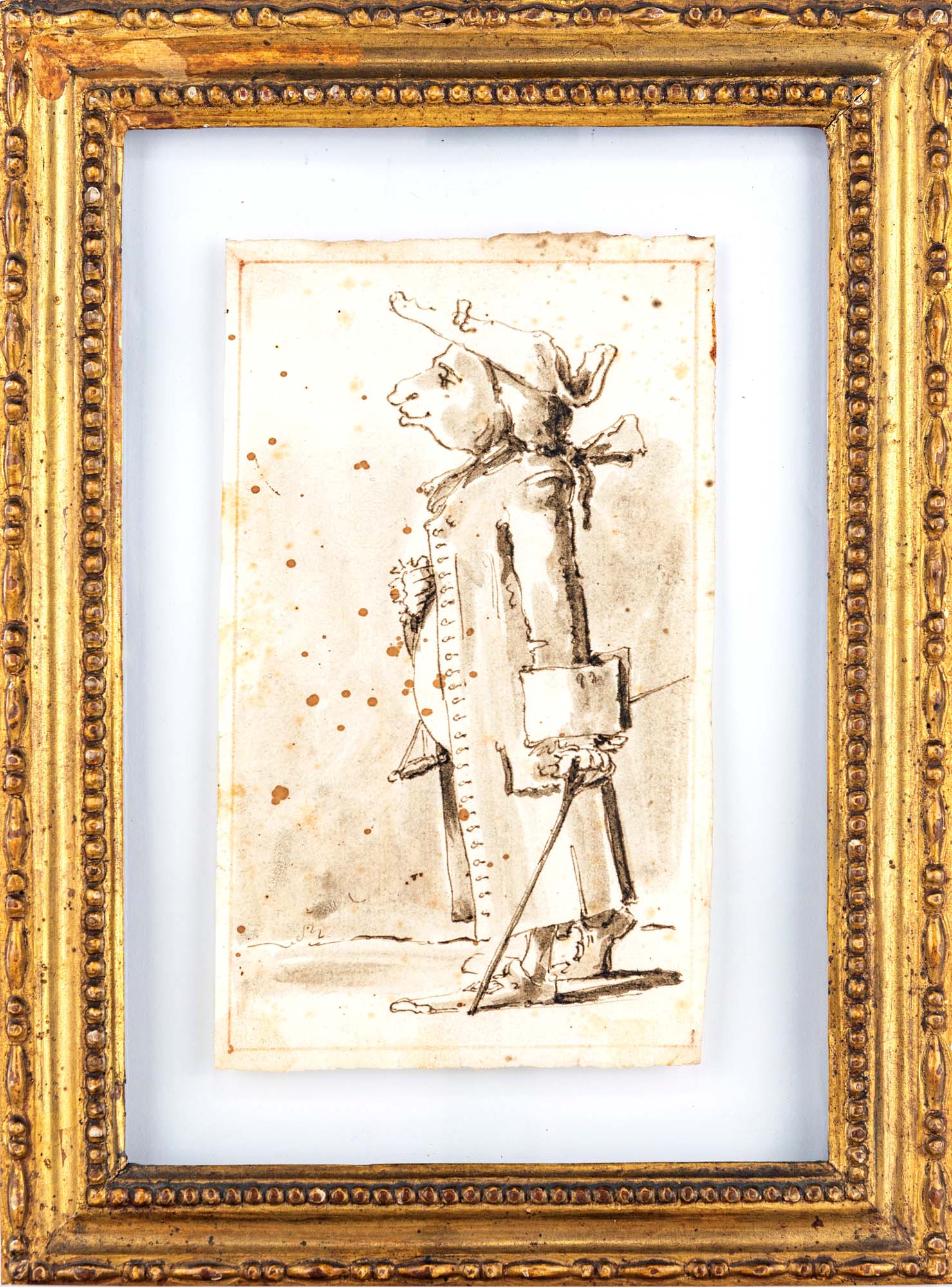 Pier Leone Ghezzi (bottega di) Roma 1674-Roma 1755 Caricatura di Gentiluomo inchiostro su carta mm 180x107 - con cornice cm 28x21