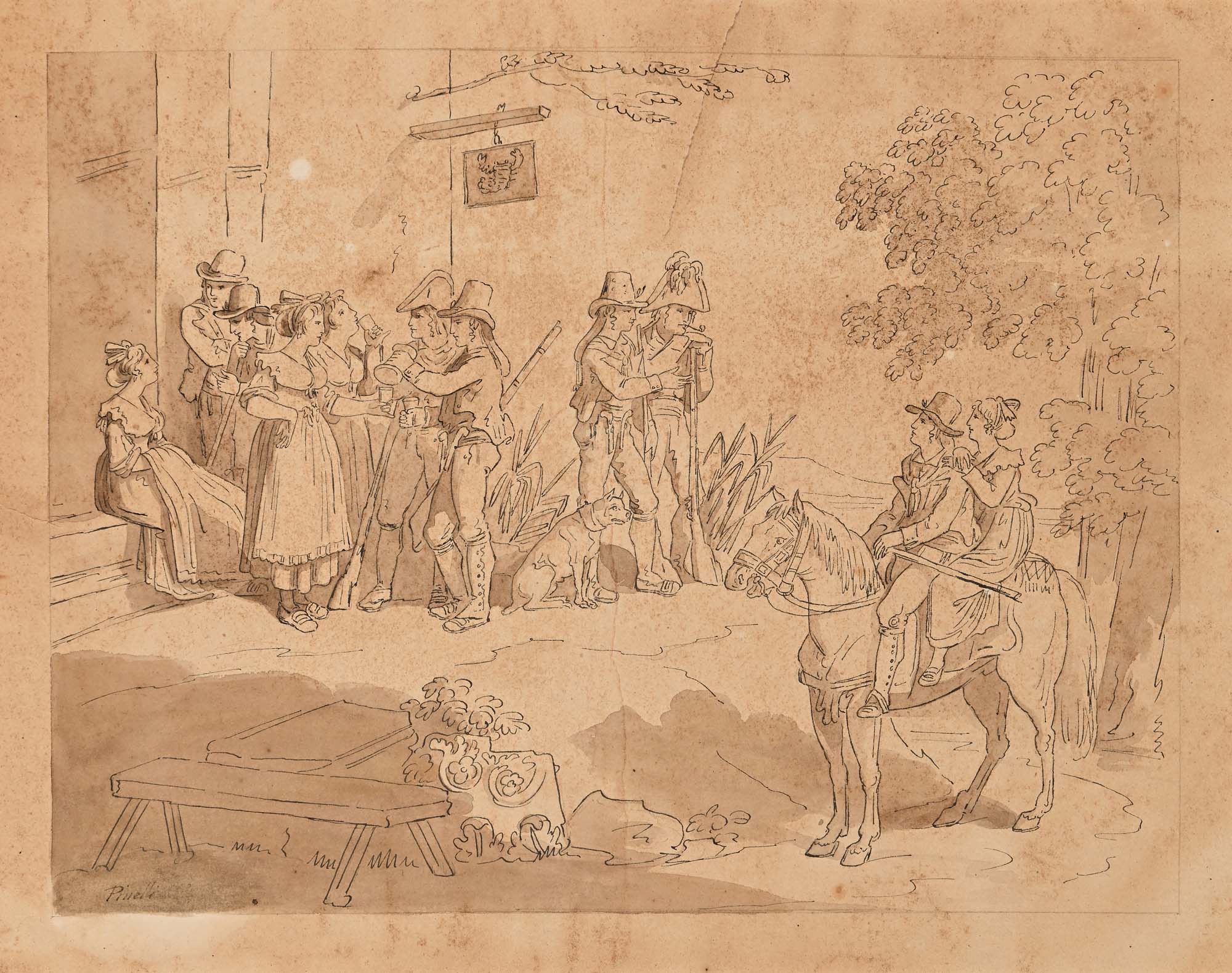 Bartolomeo Pinelli Roma 1781-Roma 1835 Donne e soldati all'osteria Firmato in...