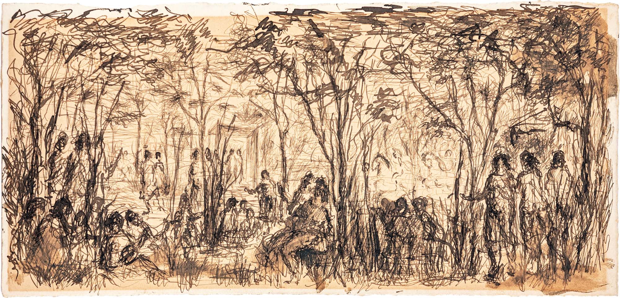 Scuola Italiana del XIX secolo Festa nella foresta china su carta mm 125x270