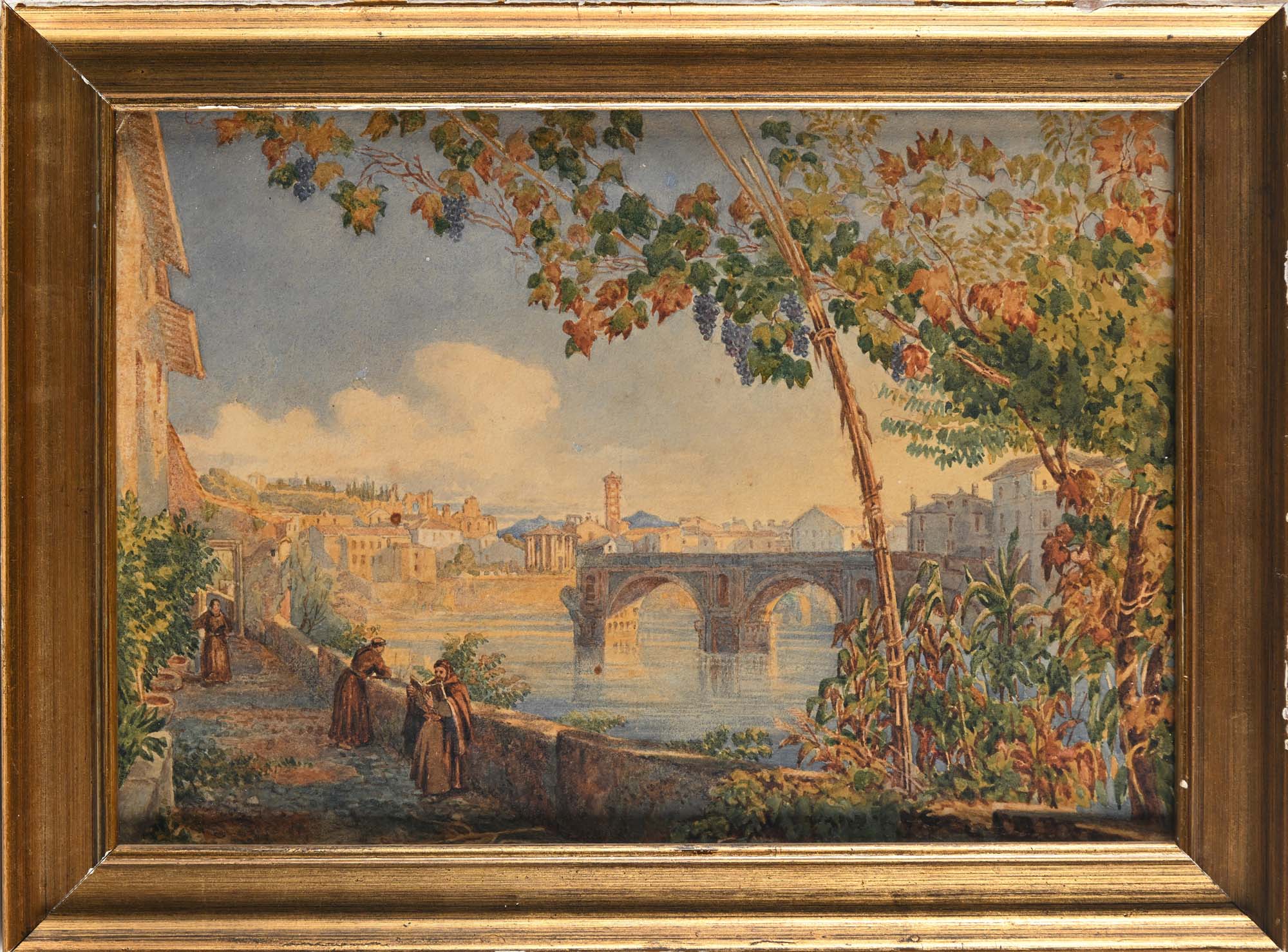 Scuola romana del XIX secolo Veduta di Roma con ponte Rotto acquerello su...