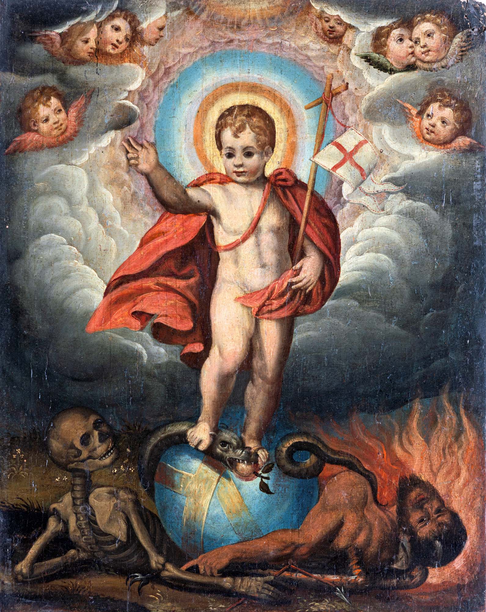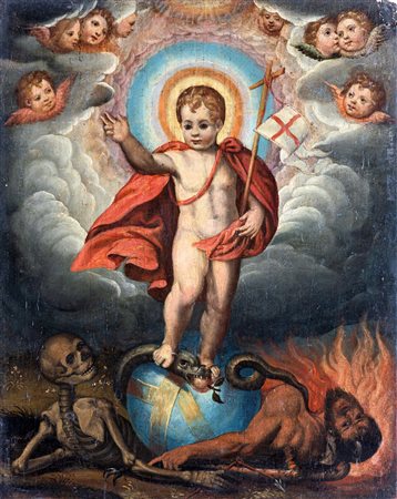 Scuola toscana del XVII secolo Redentore infante olio su tavola cm 40,5x37