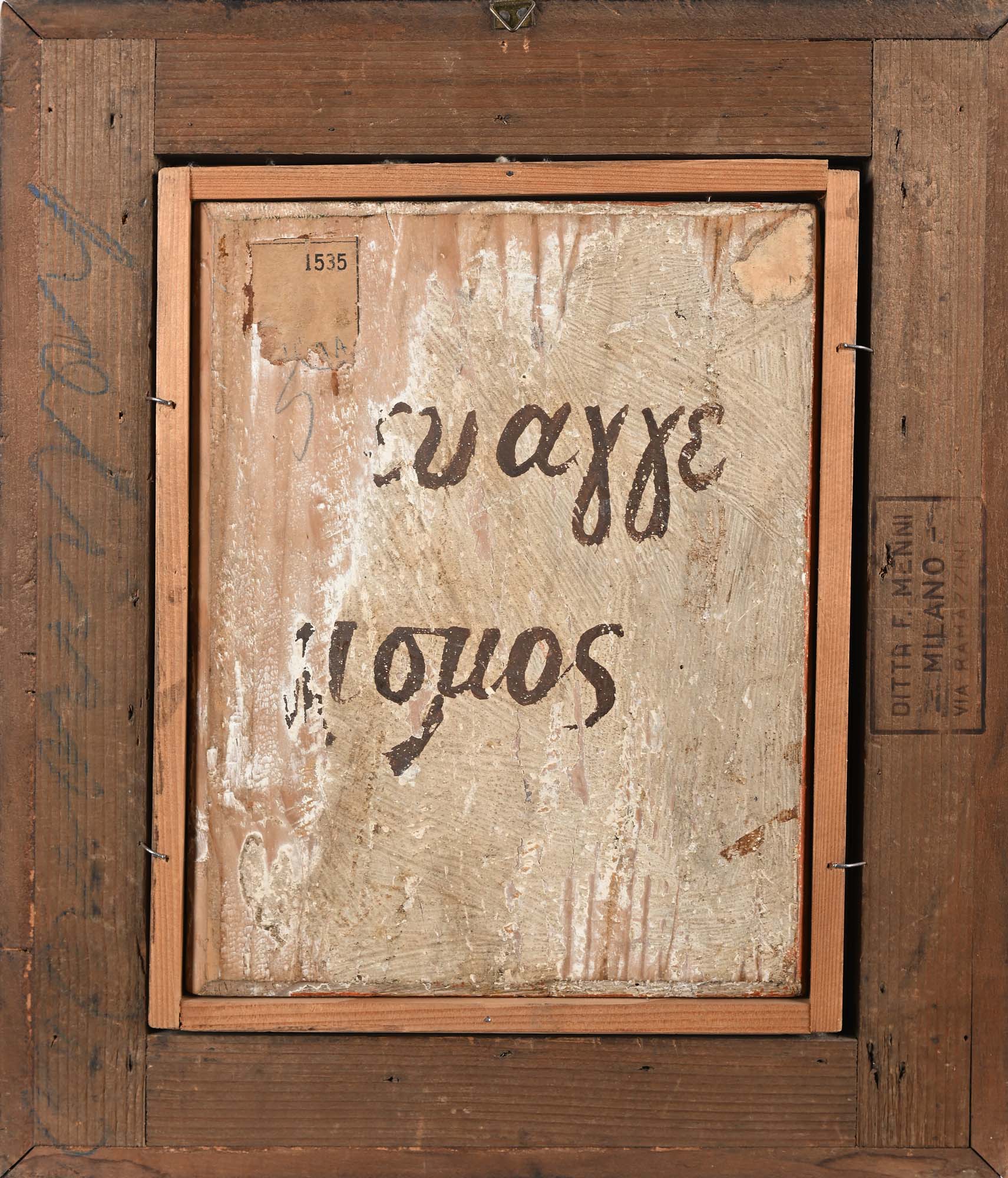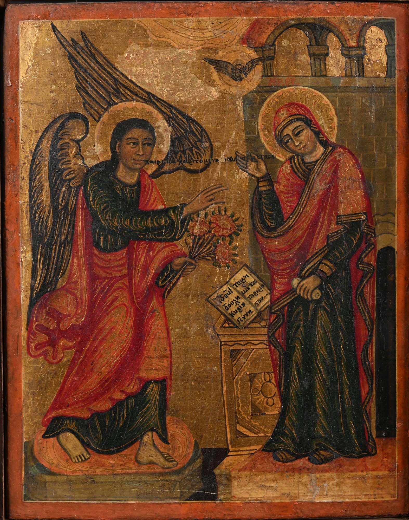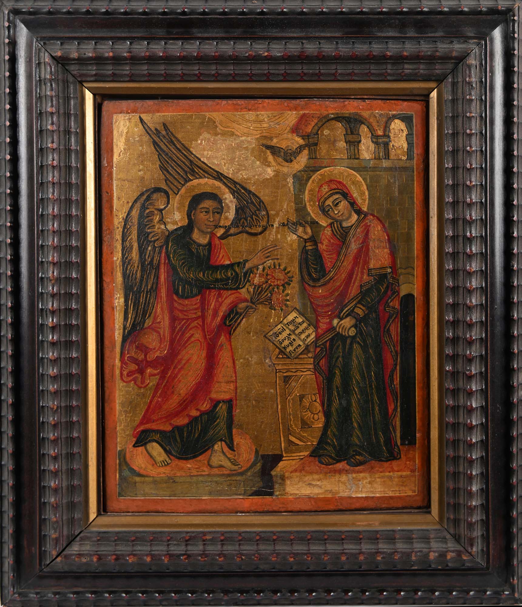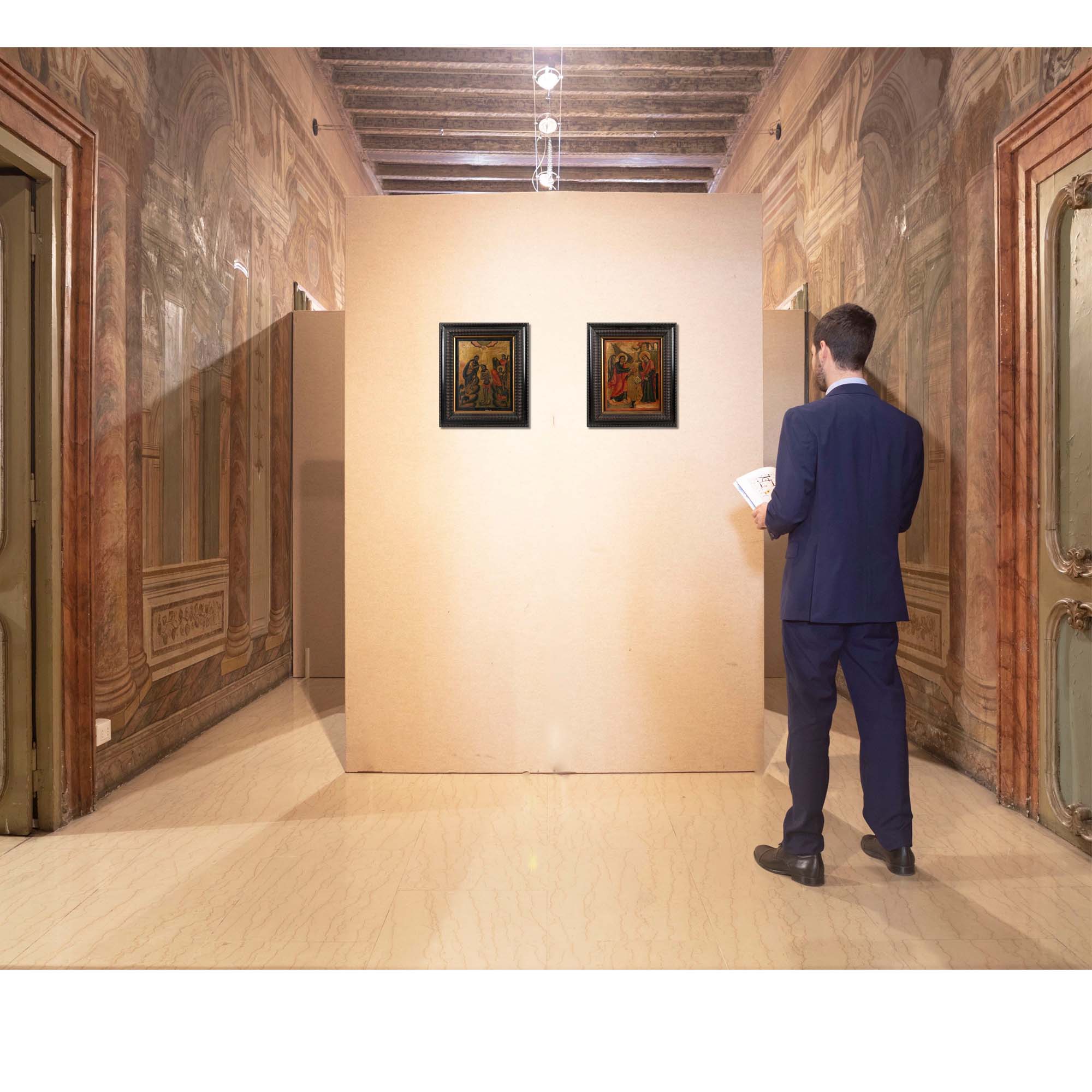 Scuola bizantina del XVIII secolo A) Battesimo di Cristo B) Annunciazione Coppia di oli su tavola su sfondo oro olio su tavola cm 27x20 con cornice cm 40x35