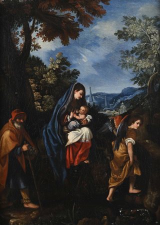 Lodovico Cardi detto il Cigoli (attribuito a) Cigoli 1559-Roma 1613 Fuga in Egitto olio su tela cm 52x37 - con cornice cm 68x53