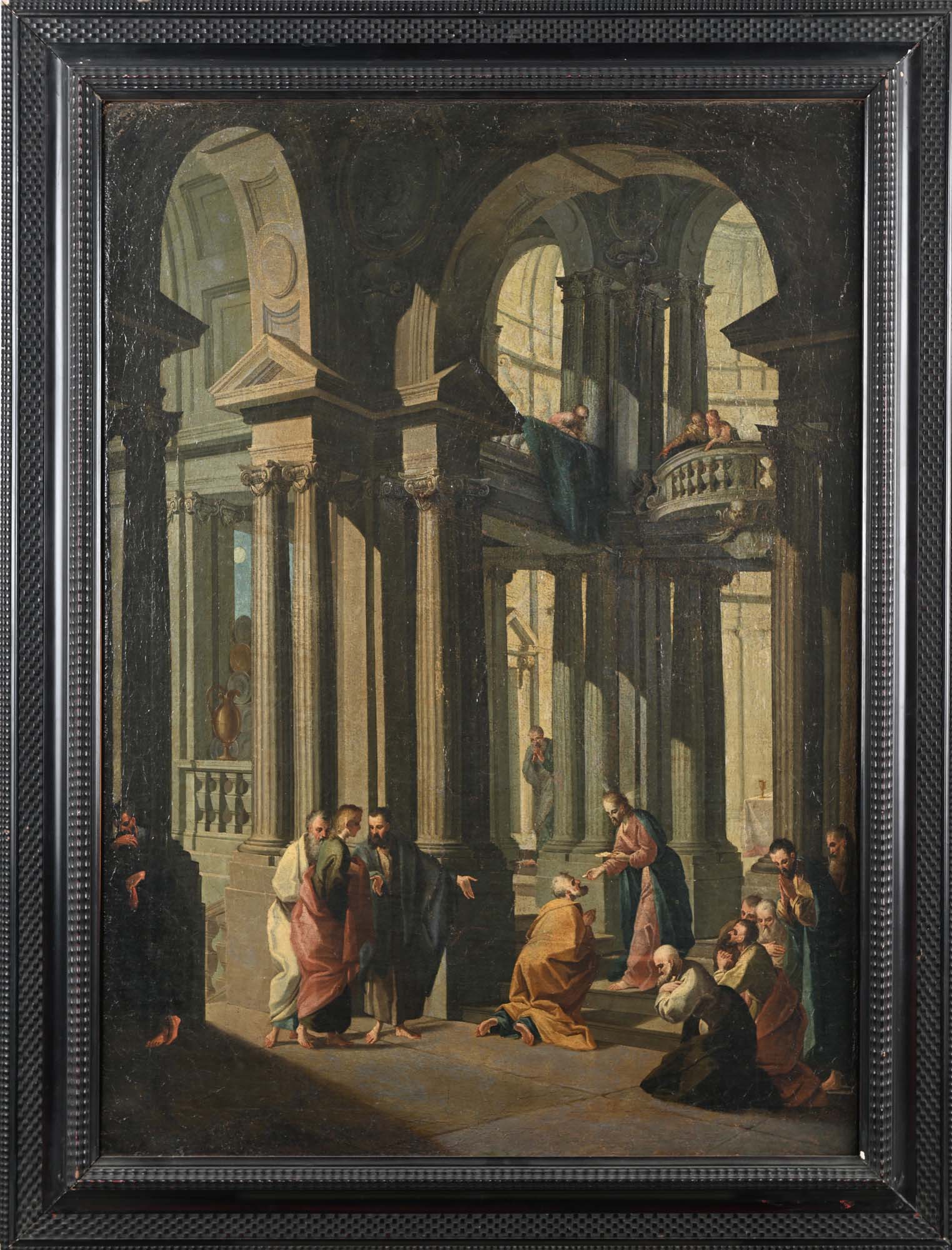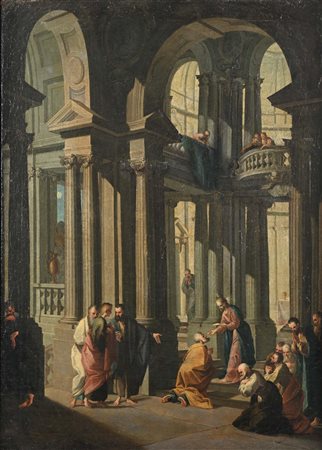 Scuola veneta del XVIII secolo Capriccio con rovine architettoniche e figure olio su tela cm 83x60 - con cornice cm 99x76
