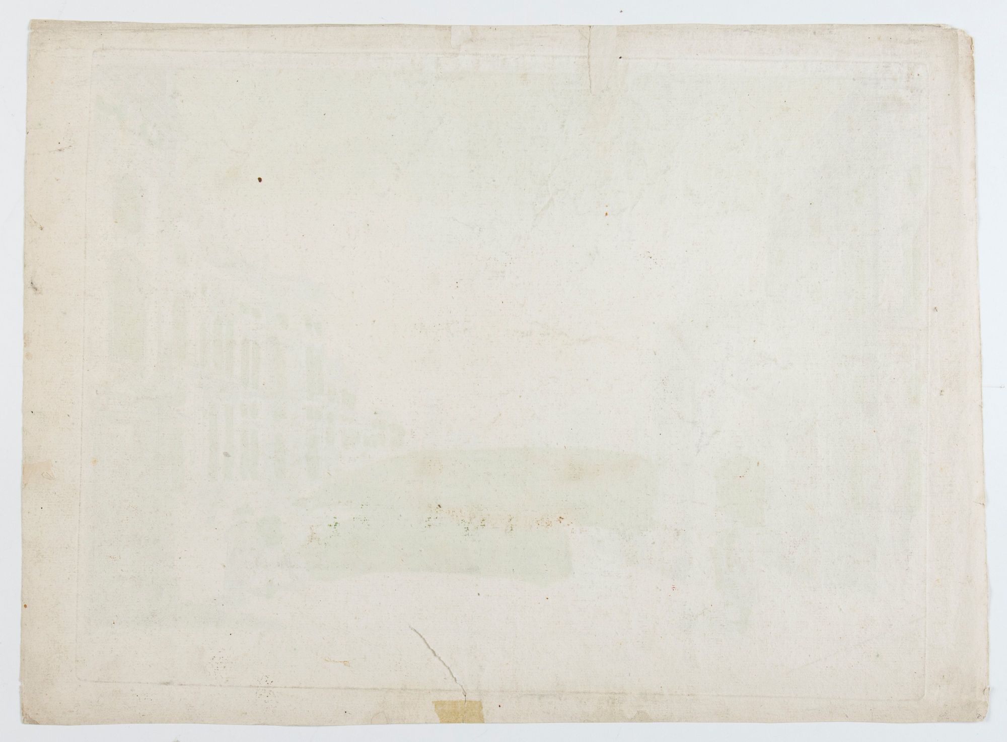 Impressa su carta vergata, con coloritura coeva. Foglio in buono stato salvo dei strappi lungo i bordi, alcuni restaurati al verso, e un lungo strappo nella parte inferiore.