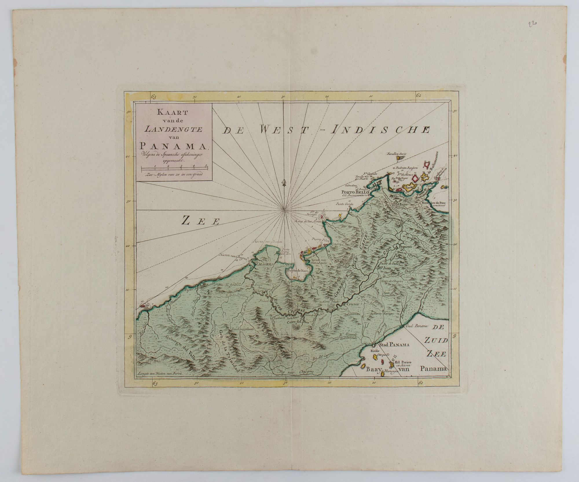 Acquaforte e bulino, 420 x 492 mm. Mappa di Panama tratta da"Nieuwe en beknopte hand-atlas"
