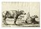 Acquaforte. mm 147x253. De Vesme/Massar, 733. Firmata a puntasecca sulla lastra in basso a destra. Seconda tavola da Cacce a diversi animali, serie in nove tavole databile al 1654. Ottima prova nell'unico stato impressa su carta vergellata sottile con filigrana "tre mezzelune". SI AGGIUNGONO: Id., Bufali con mandriano. mm 105x158. De Vesme/Massar,180. In basso sulla lastra da sinistra a destra "Stef. della Bella florentinus fecit." e a seguire l'indirizzo "Ciartres excud. Cum Privil. Regis". Da Varie figure serie in otto tavole databile al 1645 ca. Buona prova su carta vergellata sottile con filigrana "corno da caccia". Al verso marchio di collezione a penna di Charles Lenormand du Coudray (Lugt, 1704-1706). / Id., Dieci tavole da Diversi animali. Acquaforte. mm 83/87x105/110.Foglio: mm 105/130x138/145. Frontespizio e tavole nn, 3,5,7,8,9,11,12,16,20. Buone impressioni su carta vergellata. (12) OPERA 1: Esemplare rifilato alla battuta del rame, visibile per breve tratto. OPERA 2: Sottili margini oltre la linea d'inquadramento. OPERE 3: Otto tavole con buoni margini oltre la battuta del rame, due rifilate all'impronta con margini sottili.