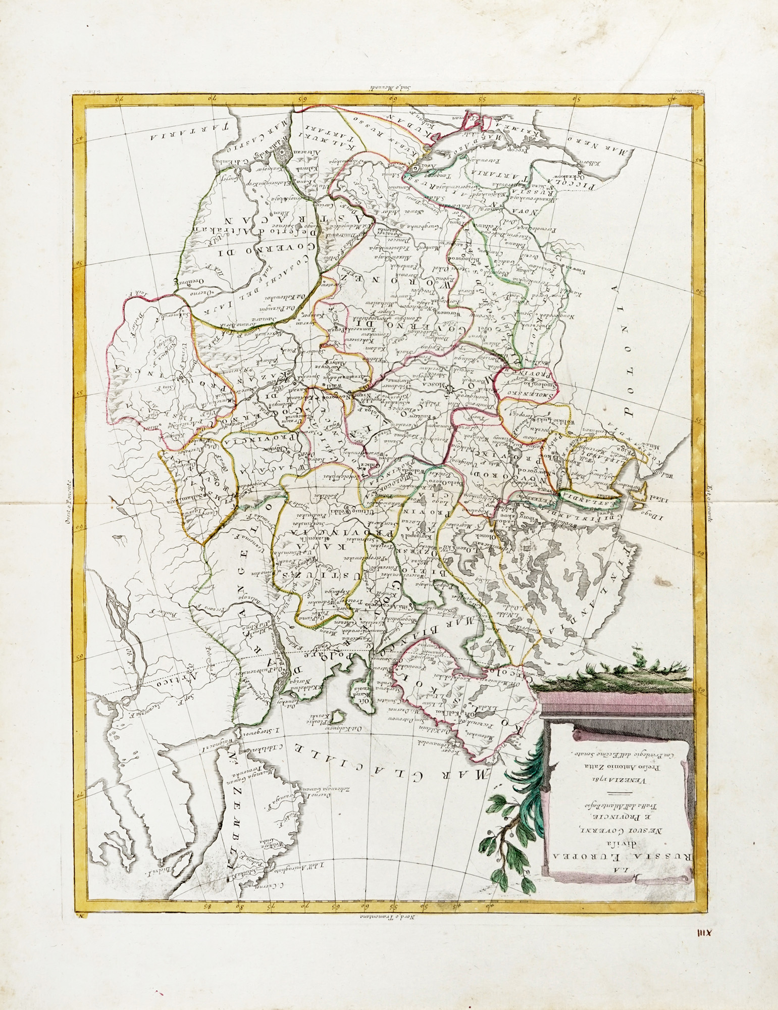 Antonio Zatta, Turchia d'Europa Divisa nelle sue Provincie e Governi di nuova Projezione / La Russia europea divisa ne' suoi Governi e Provincie. Venezia: Presso Antonio Zatta, 1782.