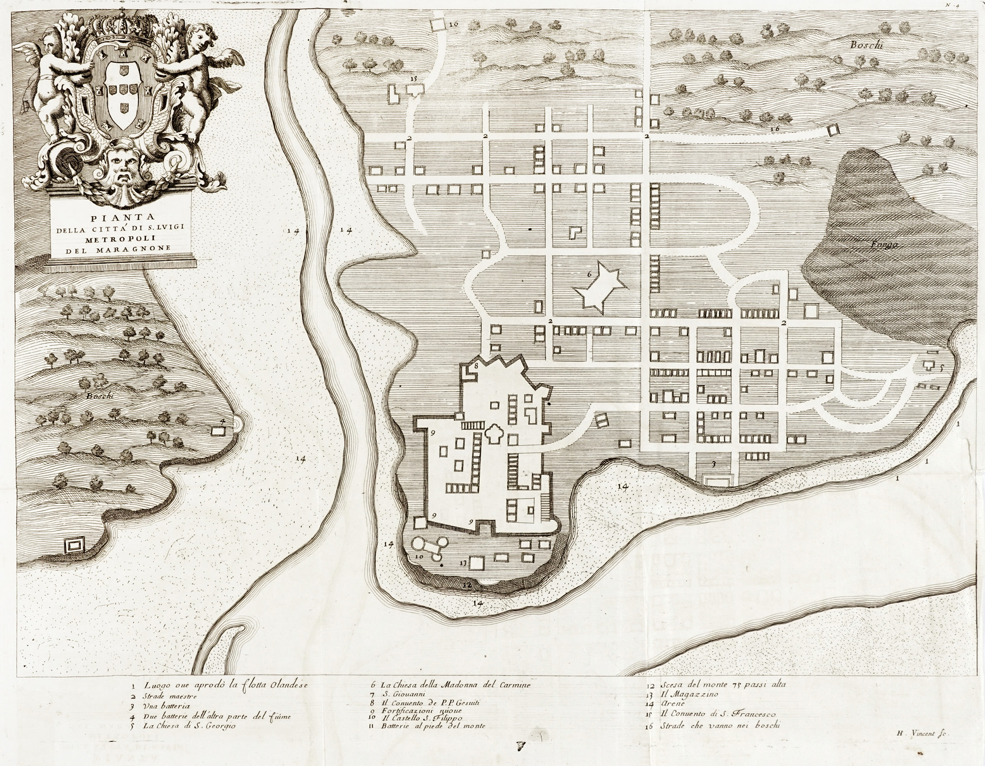 João José de Santa Teresa e Andrea Antonio Orazi Hubert Vincent, Pianta della città di S. Luigi metropoli del Maragnone. In Roma: Nella Stamperia degl'Eredi del Corbelletti, 1698.